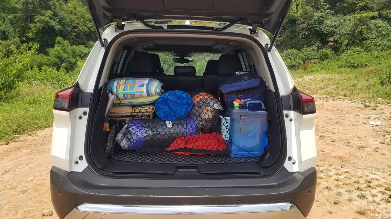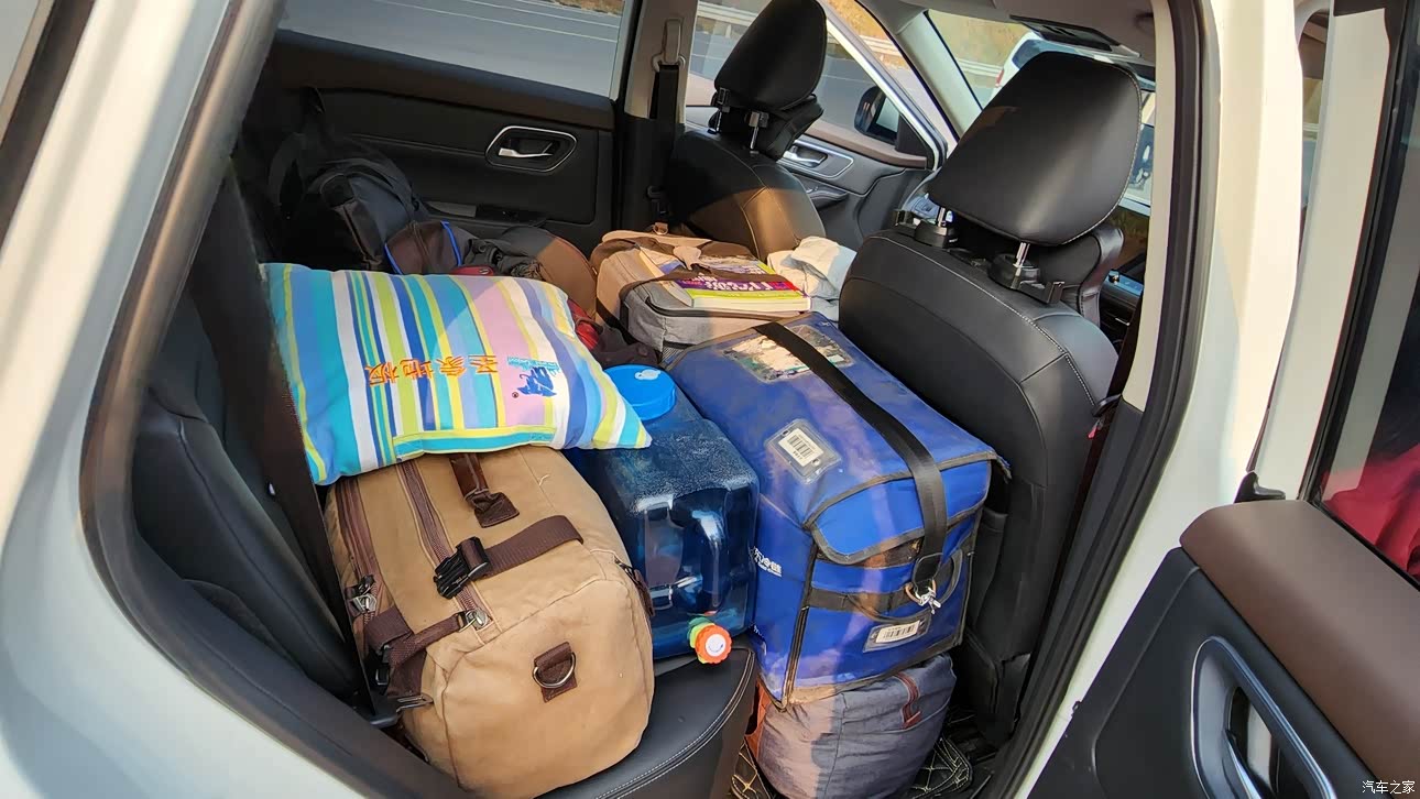 门板上、手套箱、中控手扶箱、后排座储物能力没得说,自驾时后排座放脚位置放置了非常多的东西:如户外电源、煮饭器具等