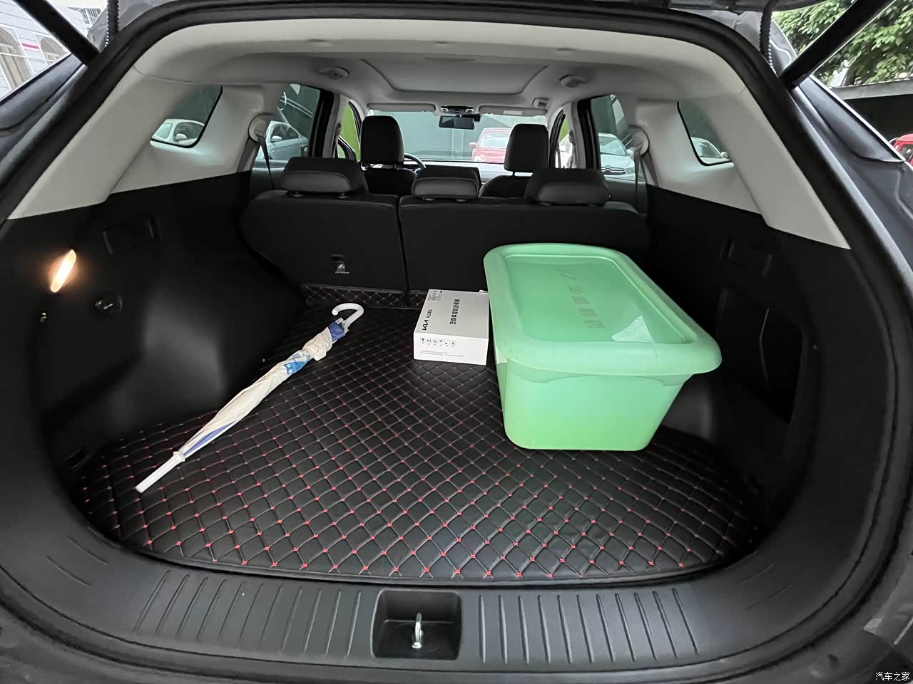 后备箱空间我觉得够用了,没有遮物帘就拿了个收纳箱放些杂物,不会显得那么凌乱。我加装了原厂的电尾门,好用,建议加装,没有的话尾箱门开启的较高,个子稍矮的女生关门费劲。