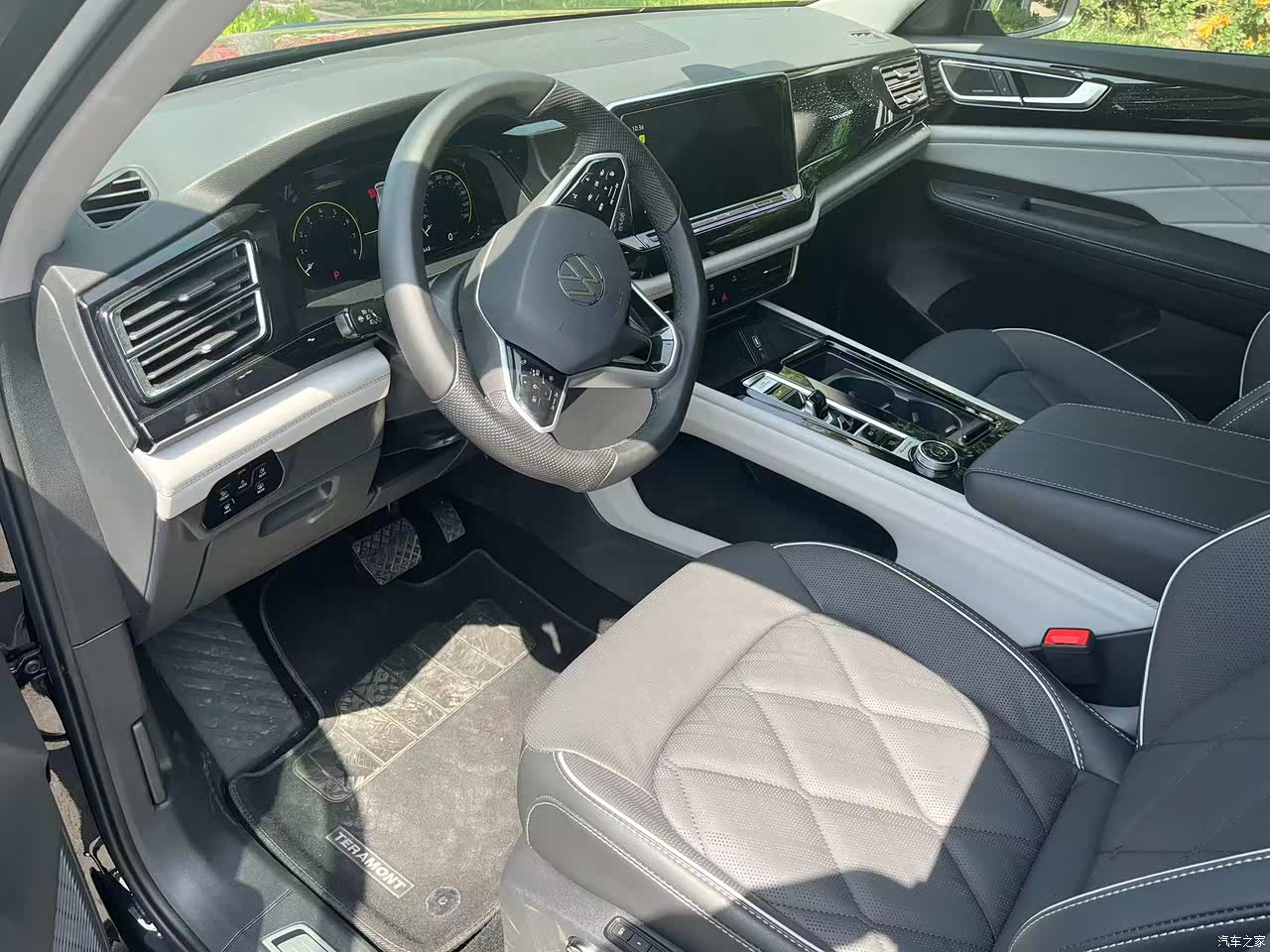 内饰这次改变也是很大的,中控的大屏终于来了,不像以前那一块小小的屏幕了,变成了炫富大屏,还增加了星空的装饰,晚上开车真的很漂亮,再加上氛围灯感觉一下就上来了,中央的档把是我不喜欢的,感觉和途昂很不搭配,外观那么硬朗,霸气,内饰这个小档把就给人一种外刚内柔的感觉,而且我手大,总感觉捏不住,好在现在习惯一点了。