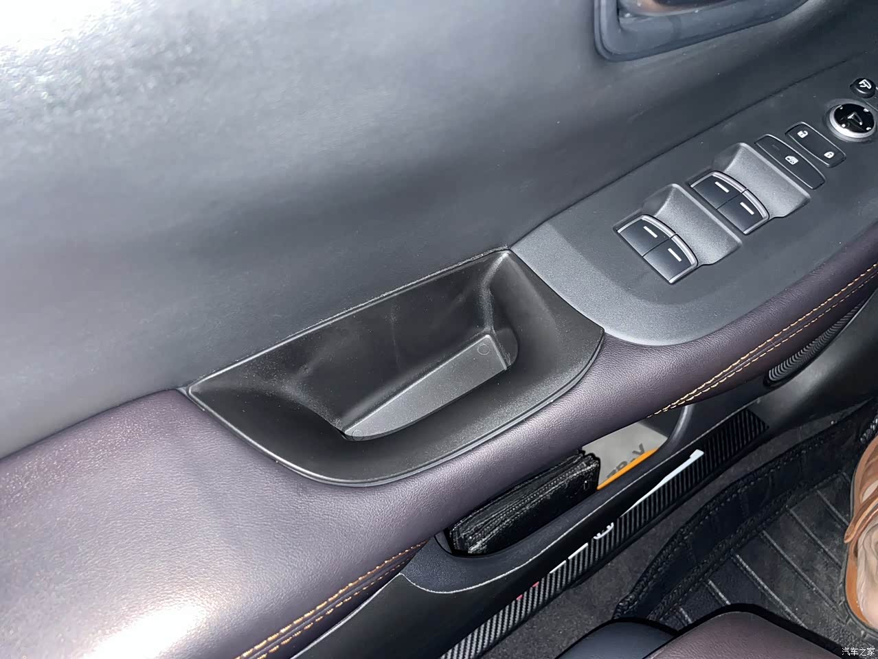 内饰整体搭配比较简单,但是用料非常足,大多数地方都有皮质包裹,皮质包裹还是挺多的比如手扶箱,空调出风口,门上大多数都是。整体内饰也是圆润为主,比较符合我的审美。