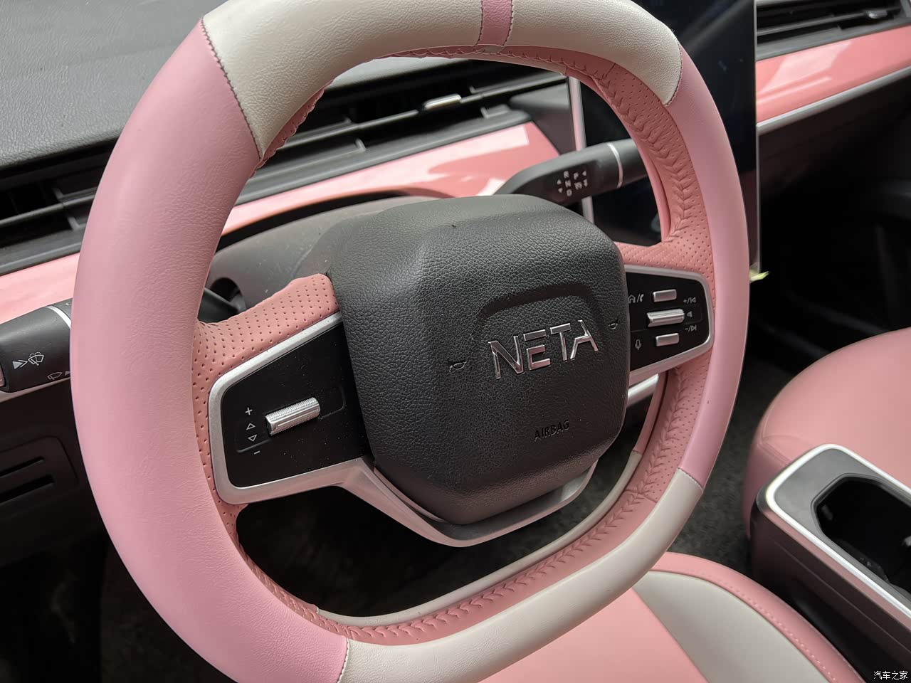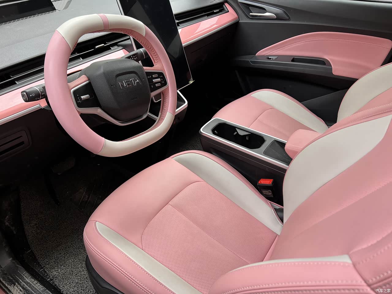 最满意的就是这台车的外观的,我一直都有一颗少女心,虽然人到中年,但是初心未改呀!所以当我看见这个樱花粉的哪吒V的时候,我就走不动了,它就是我的命定情车呀!外观小巧玲珑,颜色招人疼爱,不加任何装饰都美美哒!内饰颜色也是和外观一样的樱花粉配白色,这个搭配太绝绝子了,粉色马卡龙!内饰整体的科技感也是满满的,配上超级大屏,太爱了!还有一点,车身小巧,停车超级方便!