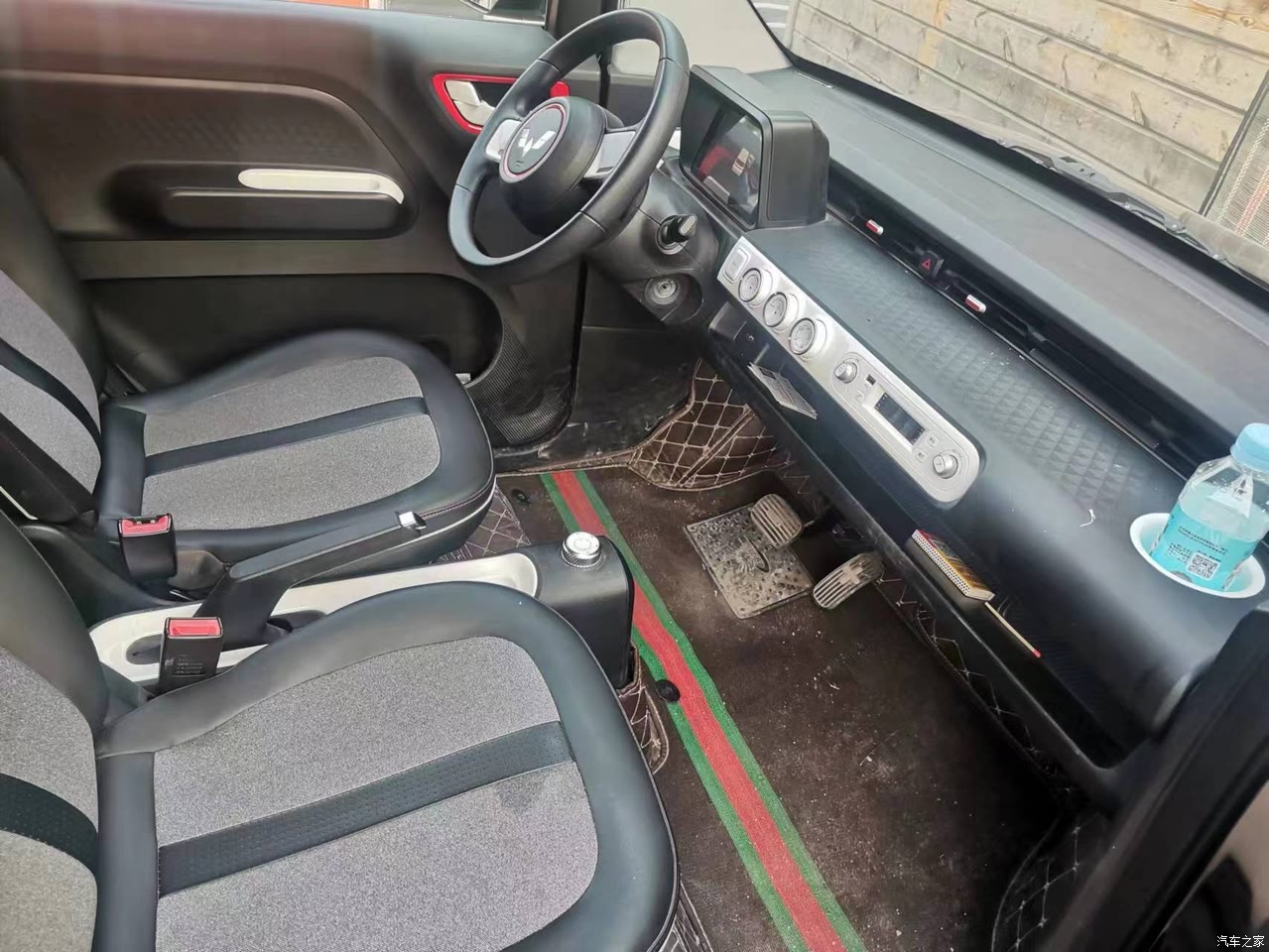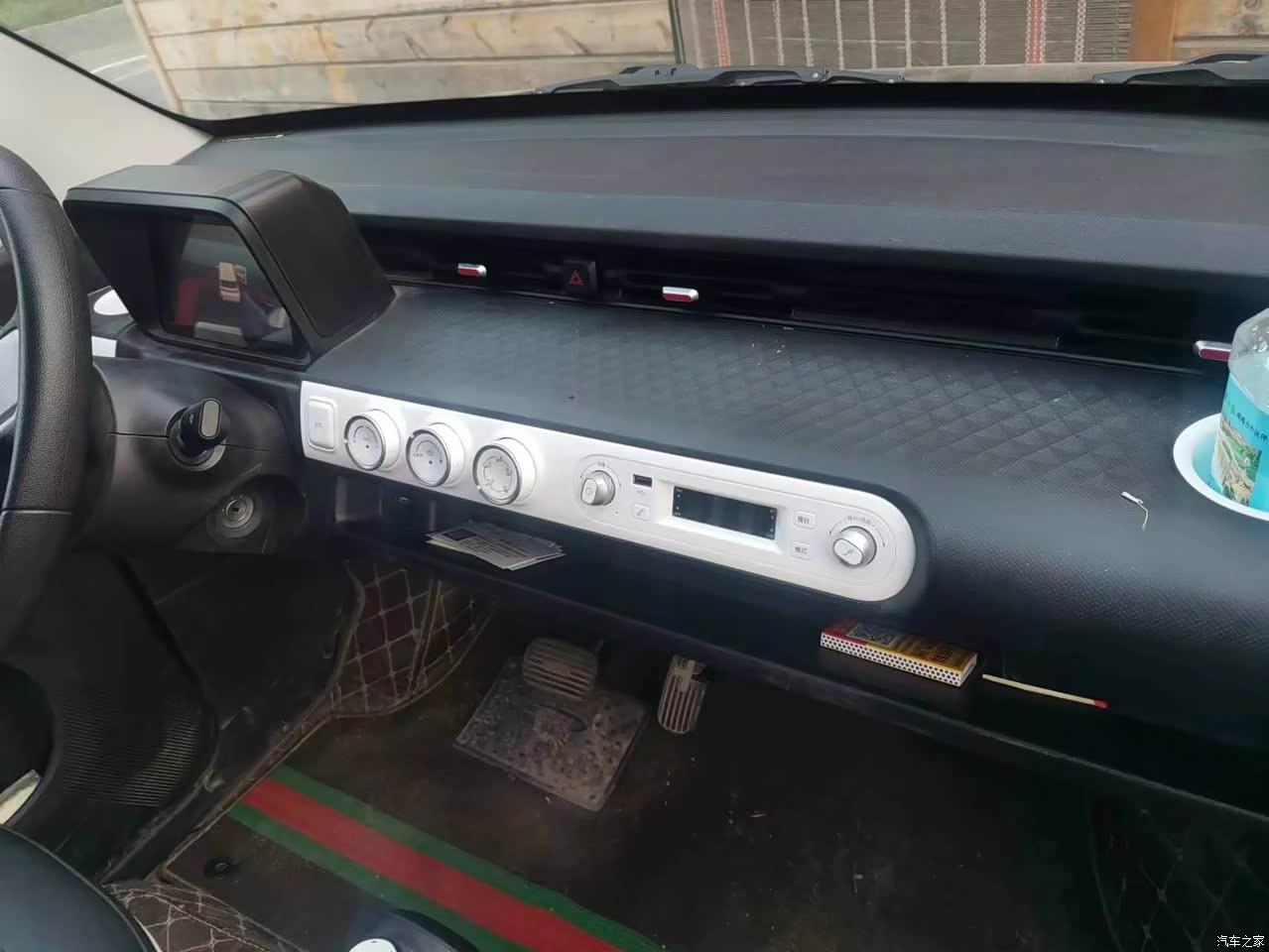 内饰就感觉比较简单了,手触摸到的地方全是塑料,官方说的是环保的用料,但是车里面会有一点点小小的异味,毕竟是一个几万的小代步车,好好的想想,这个用料也是可以啊,但是配色是挺好看的,黑色的外观搭配的一个红色的小内饰,看着也是比较运动,