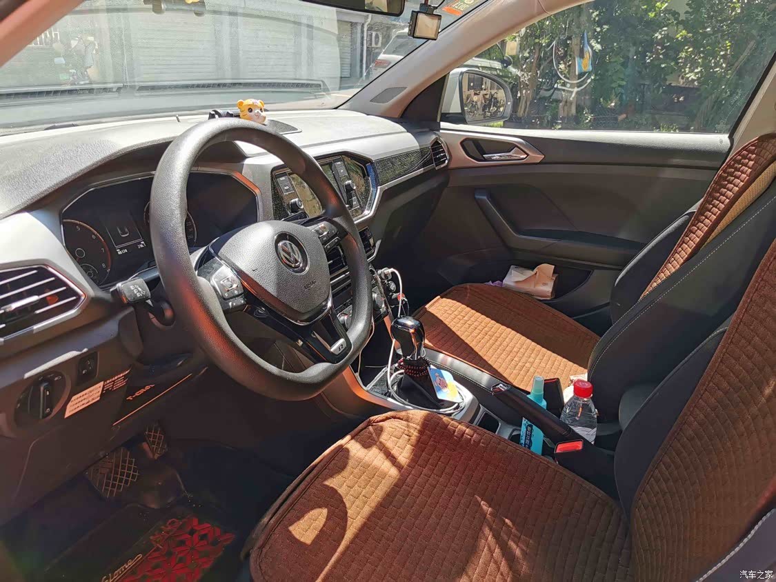 我买的这台内饰是黑色为主,不是太好看,所以我又买了一套棕色坐垫,中间是一块触摸屏幕,搭配了机械仪表盘。仪表盘字比较大,看的很清楚。空调面板是按钮式转动起来阻尼感不错,座椅的头枕与靠背连接在一起,有点像赛车的座椅。中控台上还有凹槽可以放纸巾、手机。