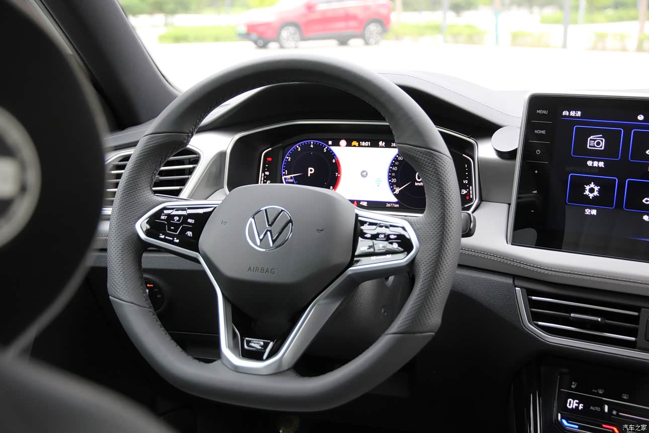 方向盘握感舒适,按键升级为触控式,各种功能键一目了然。使用过程感觉不错