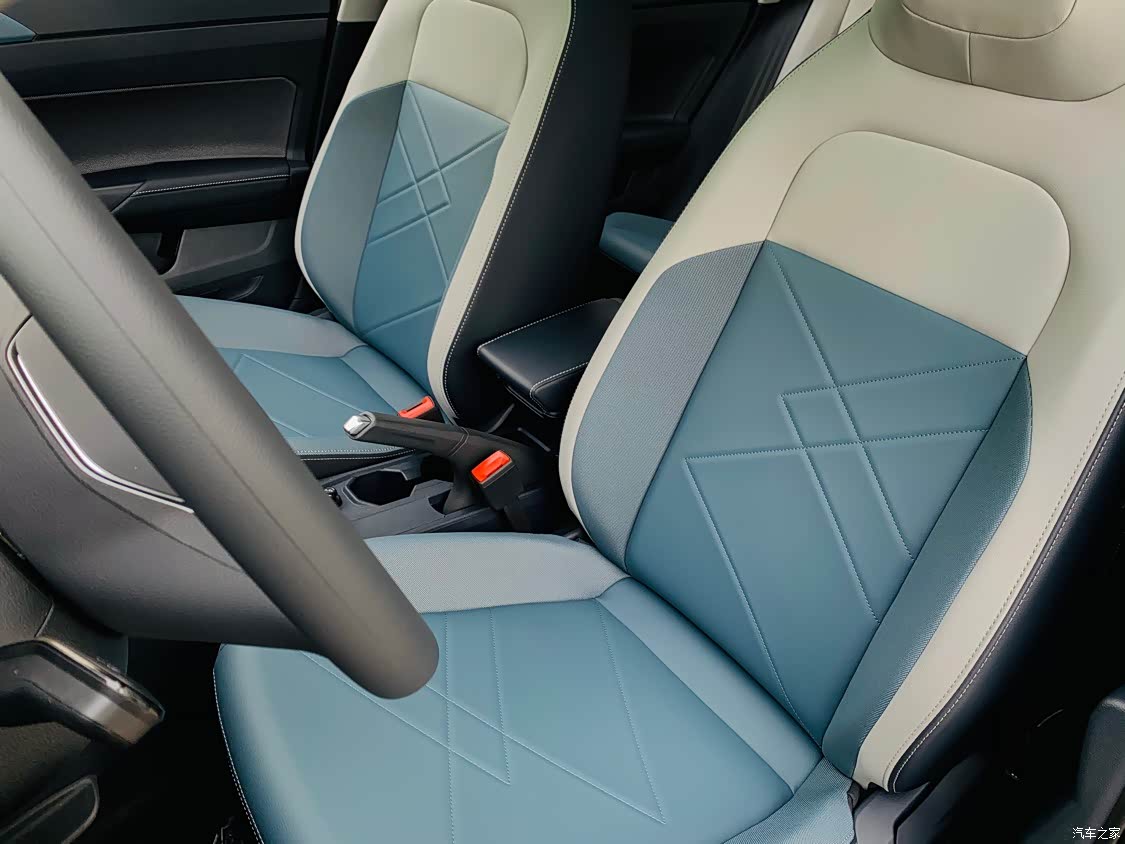 双拼撞色的内饰设计会提升对于车内的氛围感,一黑到底的设计已经成为了过去式。一体式座椅加上蓝白菱纹镶拼的搭配,运动感也有了一些体现,座椅由皮质和织物相拼而成,比起全织物的上些档次,坐起来的感受软硬程度适中,臀部的横面稍微有点短。。就是一点座椅调节都是手动的,副驾驶手动能够理解,主驾驶不搞六向的就算了,四向的都不配,这一点确实有点low。8+8的液晶仪表和中控大屏即提升了车内的科技感,同时也让车辆信息显示的更为全面。空调调节是传统的旋钮式,这样的好处是更直接,缺点是和大屏有些违和感。在内饰这方面朗逸新锐比宝来传奇是要更好看一些,大屏和撞色座椅这一点就够了。