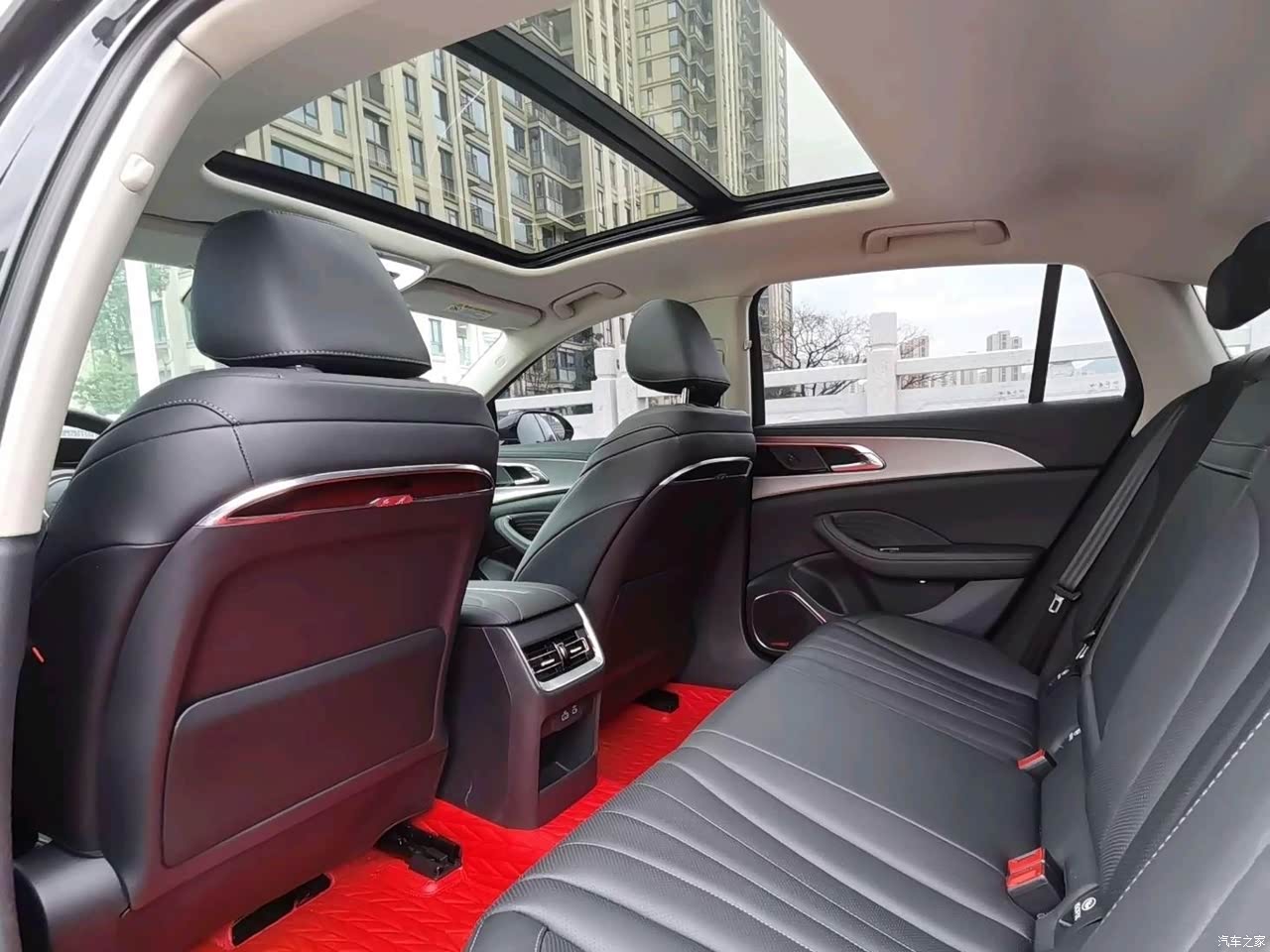 我是中等身材,调整好我的驾驶坐姿,后排还有不错的腿部空间,同时有了全景天窗的加持,后排的空间开扬感也不错,相比之下,没有天窗的车会更加容易感觉到空间局促的压抑。