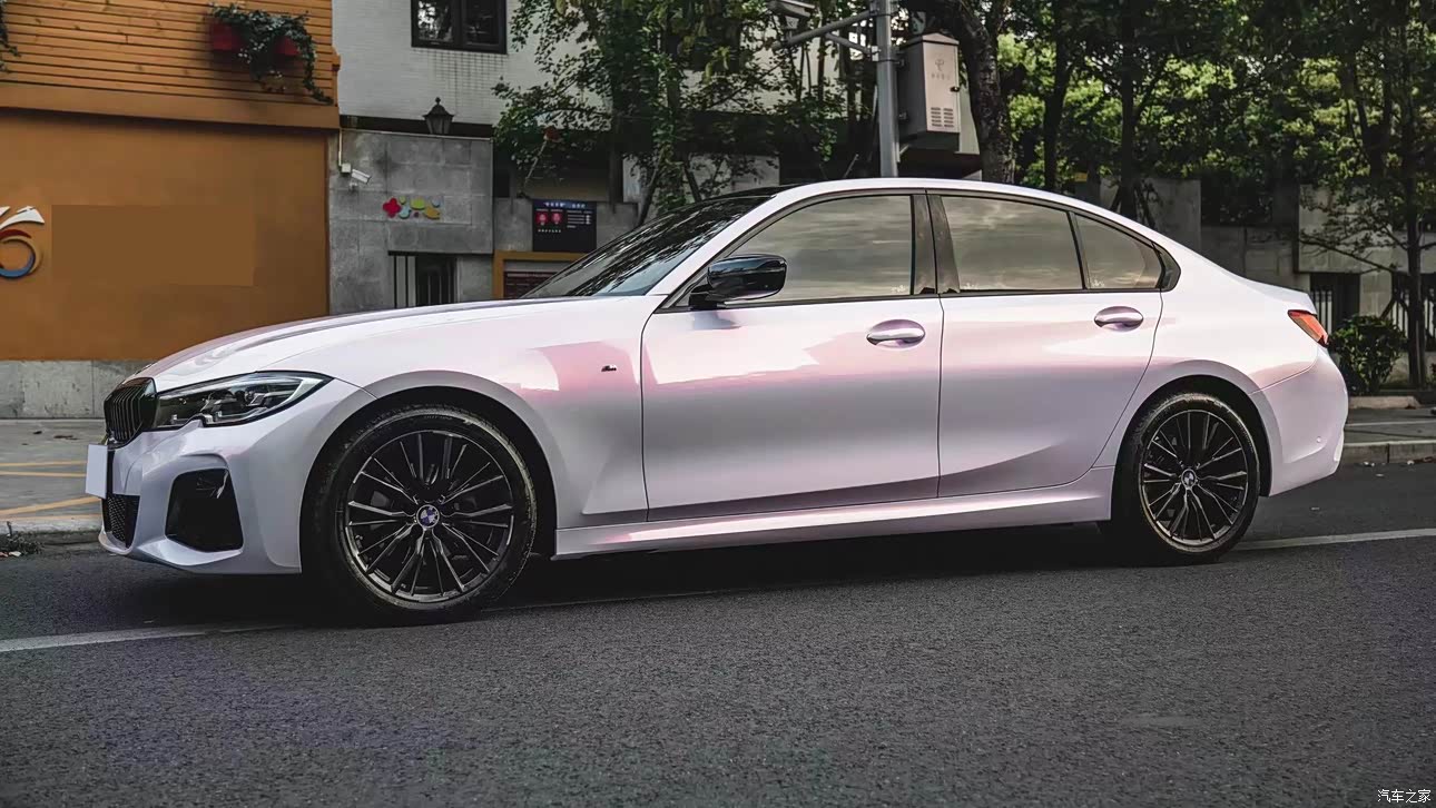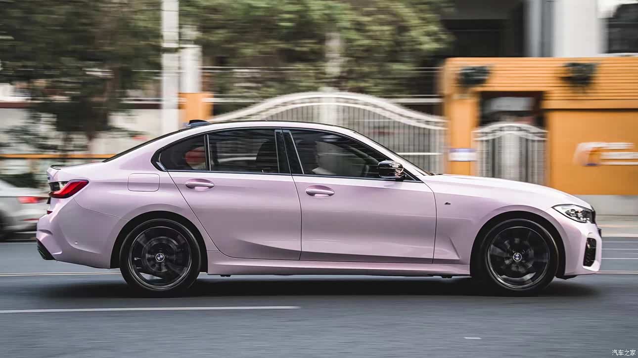 我挺喜欢22款的前脸设计,全黑的进气格栅非常适合耀黑版,熏黑的轮毂设计也运动感十足,当时选耀黑版就是冲着这个熏黑套装和哈曼卡顿音响去的。另外今年重新改了这个电光樱花粉也非常满意,3系对颜色的驾驭能力还是很强,而且今年特别流行这个颜色,群里很多车友也有改装的,实际效果确实很不错,换个颜色感觉又开上新车。