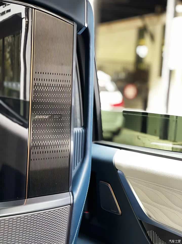 车内内饰还是非常高级的,包括大量的软性材质的运用,青白内饰的配色,门板上的流线设计,氛围灯以及星空顶,还有BOSE音响头枕扬声器,还有双层隔音玻璃,给我带来顶级的豪华质感。