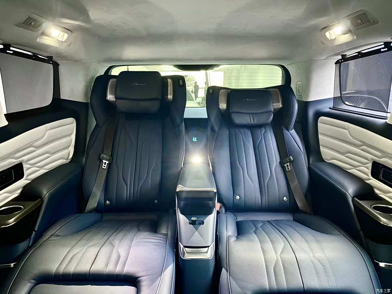 空间的话我也是非常满意的,特别是第二排的160度云感座椅,整个座椅都是真皮包裹,包括扶手,乘坐方面没有一味的追求柔软,像个大沙发一样的陷进去,而是给与了一定的支撑性,投资很舒服,还有一个颈托,座椅支持18向调节,18点的指感按摩,靠背脚托、脚踏、坐垫都是配备齐全,对于疲劳的我们老板来说就是在车里得到片刻的放松和休息。