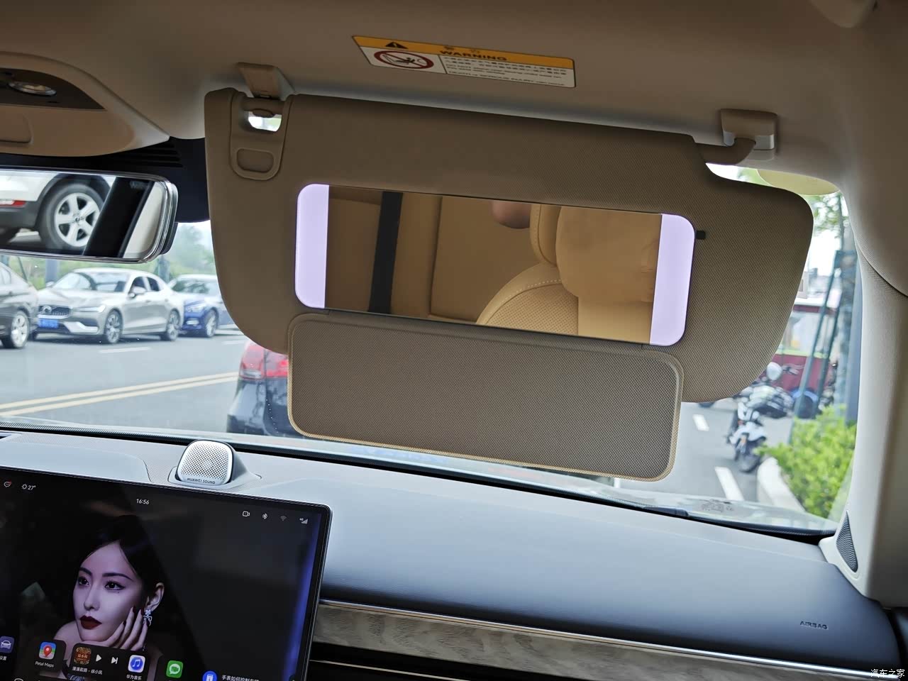 钢琴烤漆虽然好看,但并不耐刮,整体内饰的设计和用掉,是很豪华的研究。主驾和副驾都设置有带照明灯光的化妆镜,这一点女士肯定非常喜欢。