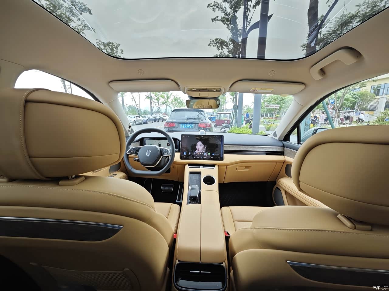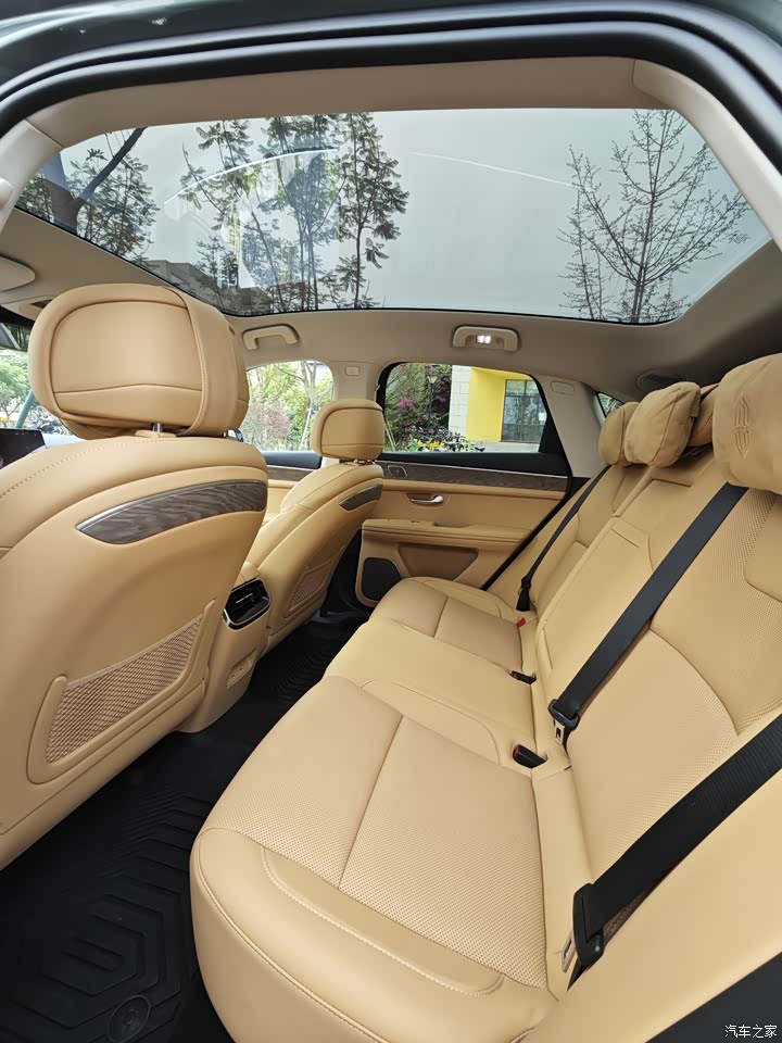 真皮使用量非常高,能摸到的地方大多都是软性包裹,手感很舒服,坐垫也很后,承托性很好。前排还可以放倒小憩模式睡觉很香。全景大天幕看星星不要太好哦。