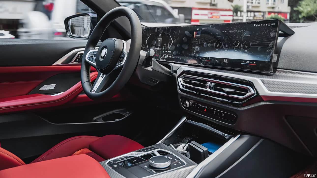 宝马的内饰设计主打还是走科技感满满的路线!全新的仪表盘设计加上悬浮式的中控大屏,看起来确实跟传统豪华车不太一样哈。另外我选了红色座椅搭配黑武士车身,性能车的感觉瞬间就有了。