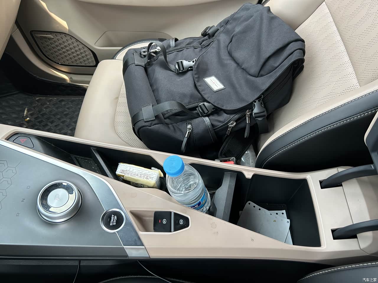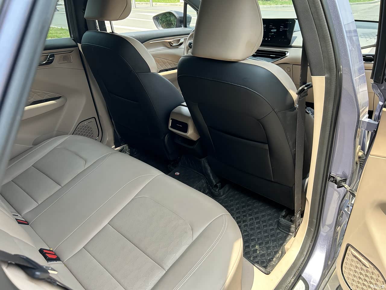 储物空间是相对比较丰富的,门上,中控,扶手下面都有,只不过后排们上面的储物空间略小。