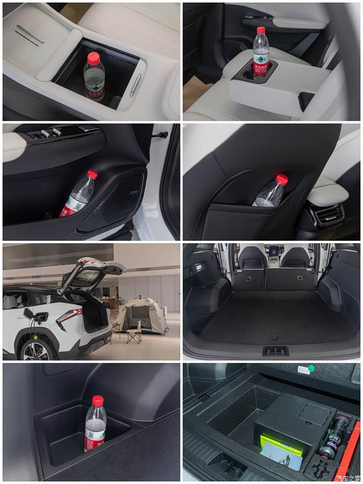 银河L7的长、宽、高分别为4700/1905/1685mm,轴距为2785mm,作为一台紧凑型SUV的它在这方面的数据到是比较中规中矩,至于空间表现,要分开评价。 储物空间表现,都给大家拍下来了,也拿矿泉水为大家做了比划,除了没有副驾驶手套箱以外,银河L7的车内储物空间表现还是非常不错的。重点表扬的是后备厢空间。后备厢除了自身空间够大,侧面还有独立的储物格便于摆放一些易滑动的物品,盖板下方还有L型的隐藏式储物格。 虽然银河L7定位于一台紧凑级SUV,但是乘坐空间的表现还是很出色的,前排座椅配备了电动座椅调节,并且带有座椅加热和舒适进入等功能。我们找来工作人员比划了下空间,销售的身高是1.68米,当他把前排调整到非常合适的位置后,头部、腿部都余有2拳空间,很是宽裕。而来到后排,发现后排座椅靠背可以调节角度的,并且后排地板几乎为纯平状态。前排位置不变,此时后排头部留有2拳有余、腿部留有3拳有余的空间。