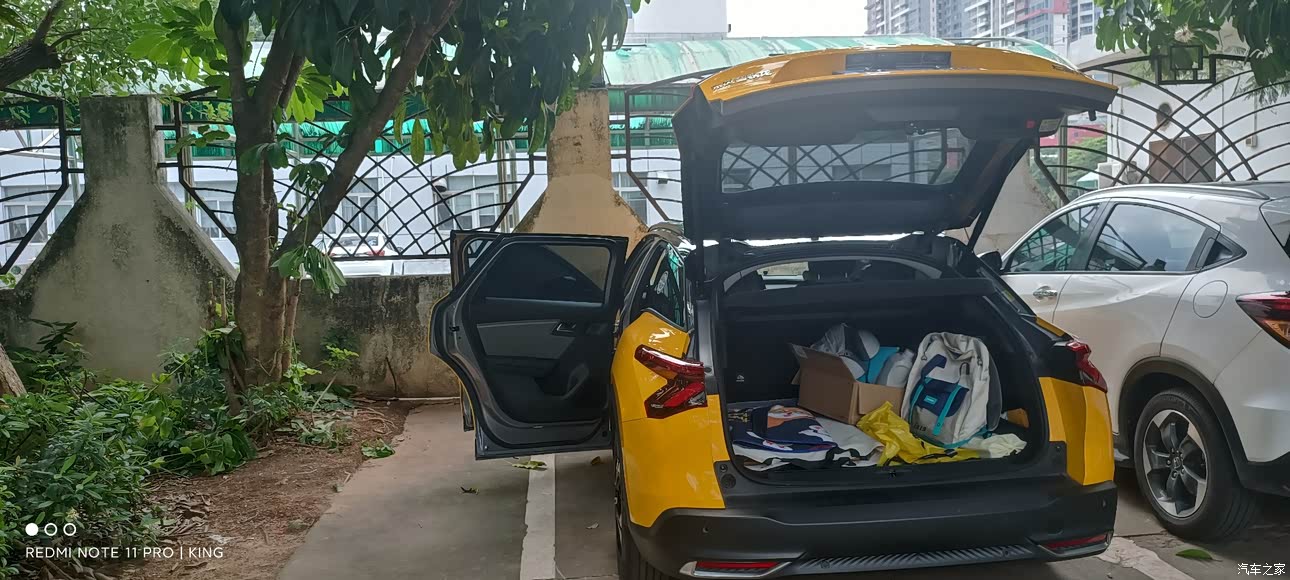 这台车的空间还是挺宽敞的,毕竟也是中型跨界轿车,后排的空间也足够坐上三个人儿,一点也不用挤,后备箱空间也是可以的,出去玩带上一家人的行李足够了。 本人176净身高,坐在车里感觉空间够用,叉着腿坐着,完全没问题。后排空间的话感觉足够用,家里没有一米八几的人,后备箱很大出去旅行游玩后者搬家都不是问题。总体来说,这个车子还是比较实用的。