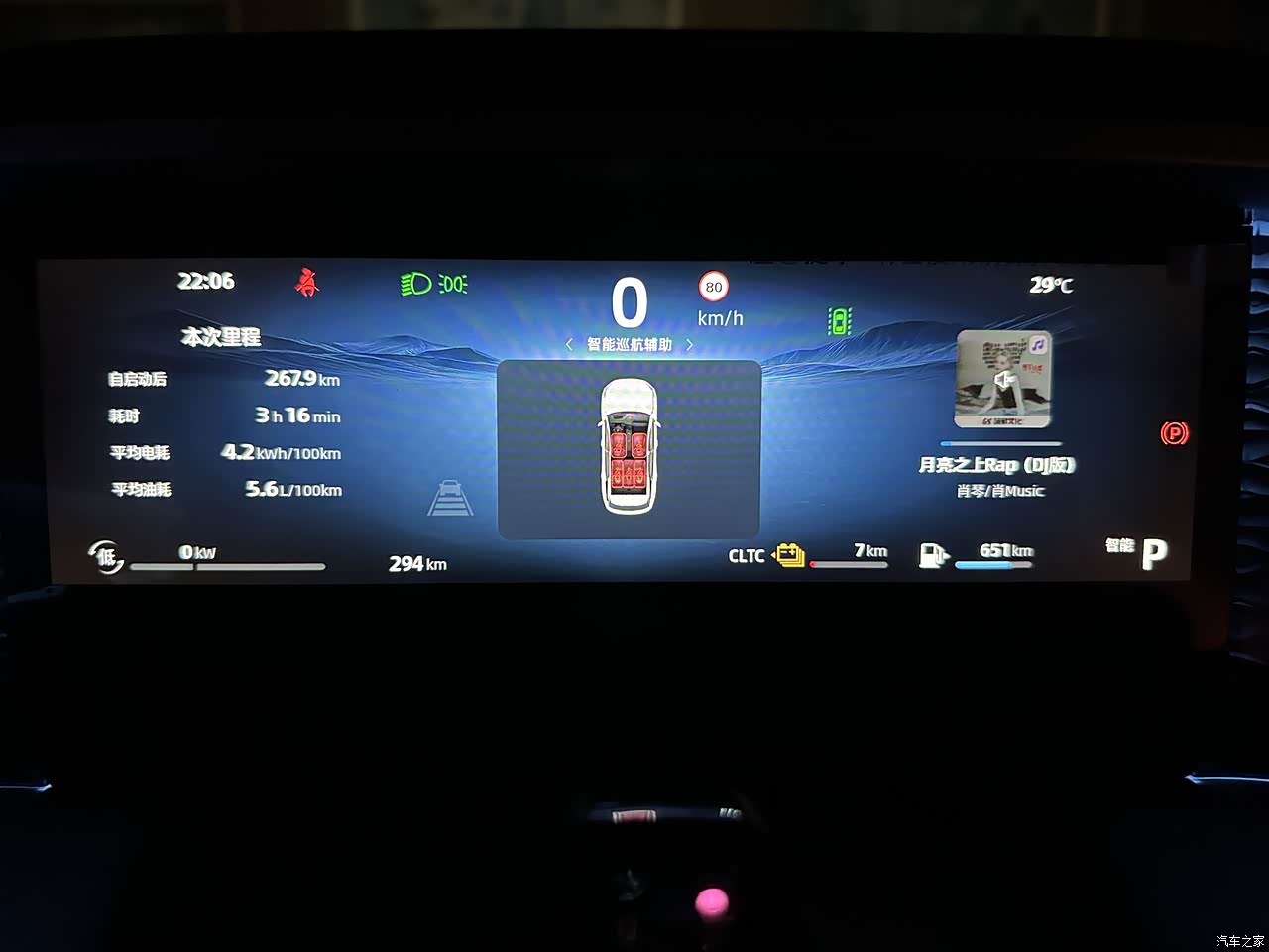 提车后第一次行驶里程为267.9KM,从长沙市岳麓区驾车到新余市渝水区,从长沙出发的时候刚好是下班高峰期比较堵,在长沙市区加了一箱油,446元,满电满油出发。回家后很晚了还剩多少油、电忘记看了,就拍了个里程数据,整个里程表显电耗4.2 kwh/100km,5.6L/100km,大家做个参考吧。对了,充电口设置在车辆左后方的,快充、慢充集合在一起,最大的好处就是停车充电比较方便,不像我朋友的车充电口在车头位置,不太好停进车位,毕竟我学车的时候学的是倒库、移库。
