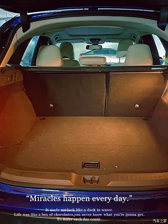 车内的空间对于家用刚好合适,前排的空间刚好头顶也不至于顶着,腿部空间也很舒服,视野不错看着外面很清楚没有什么阻碍,后排的空间也不错,整体坐着舒适度不错,后备箱也不小,要是正常出行带一些比较大的物品也都可以,我当时买车是跟我家人一起去的,都说很满意。