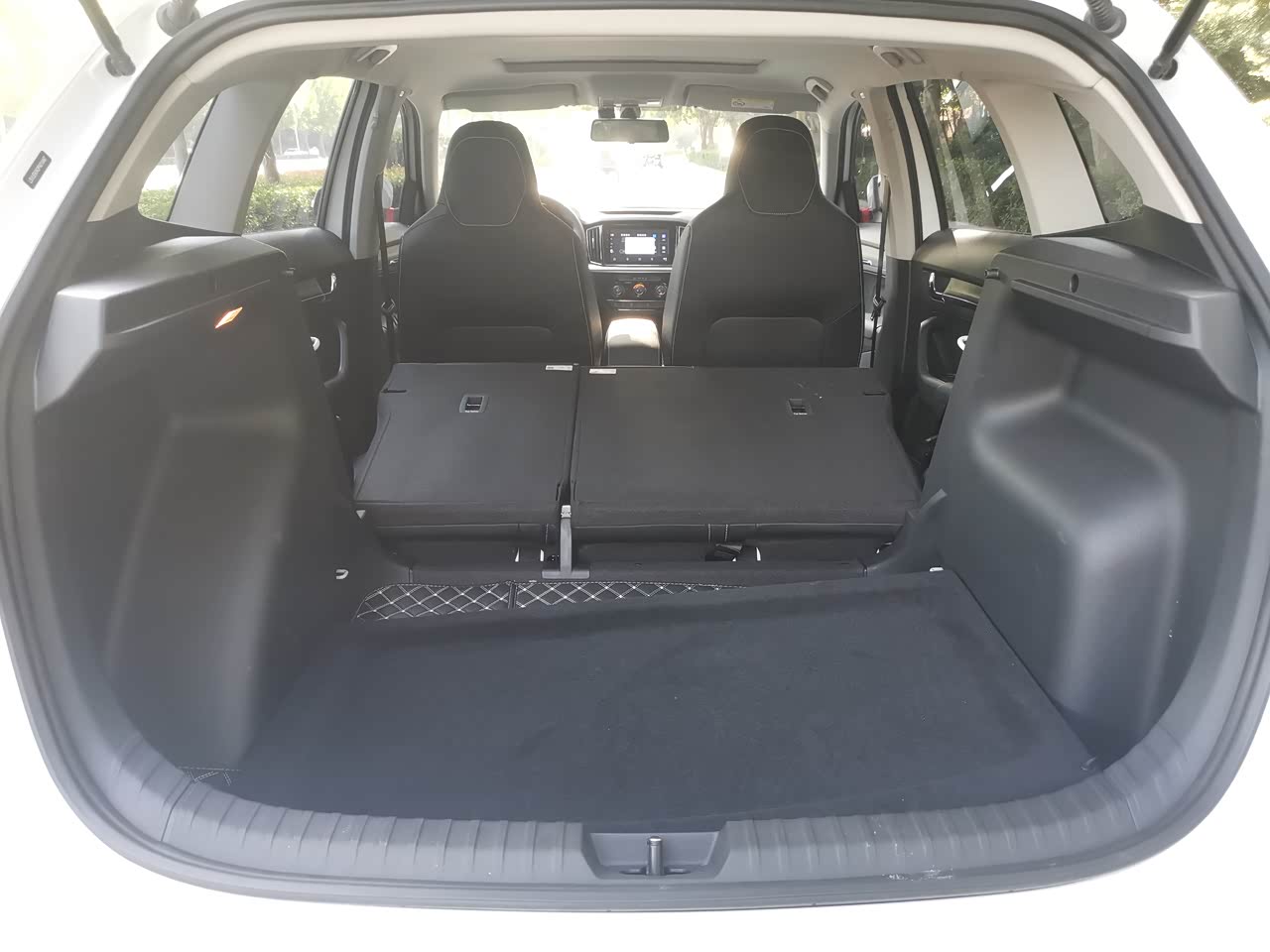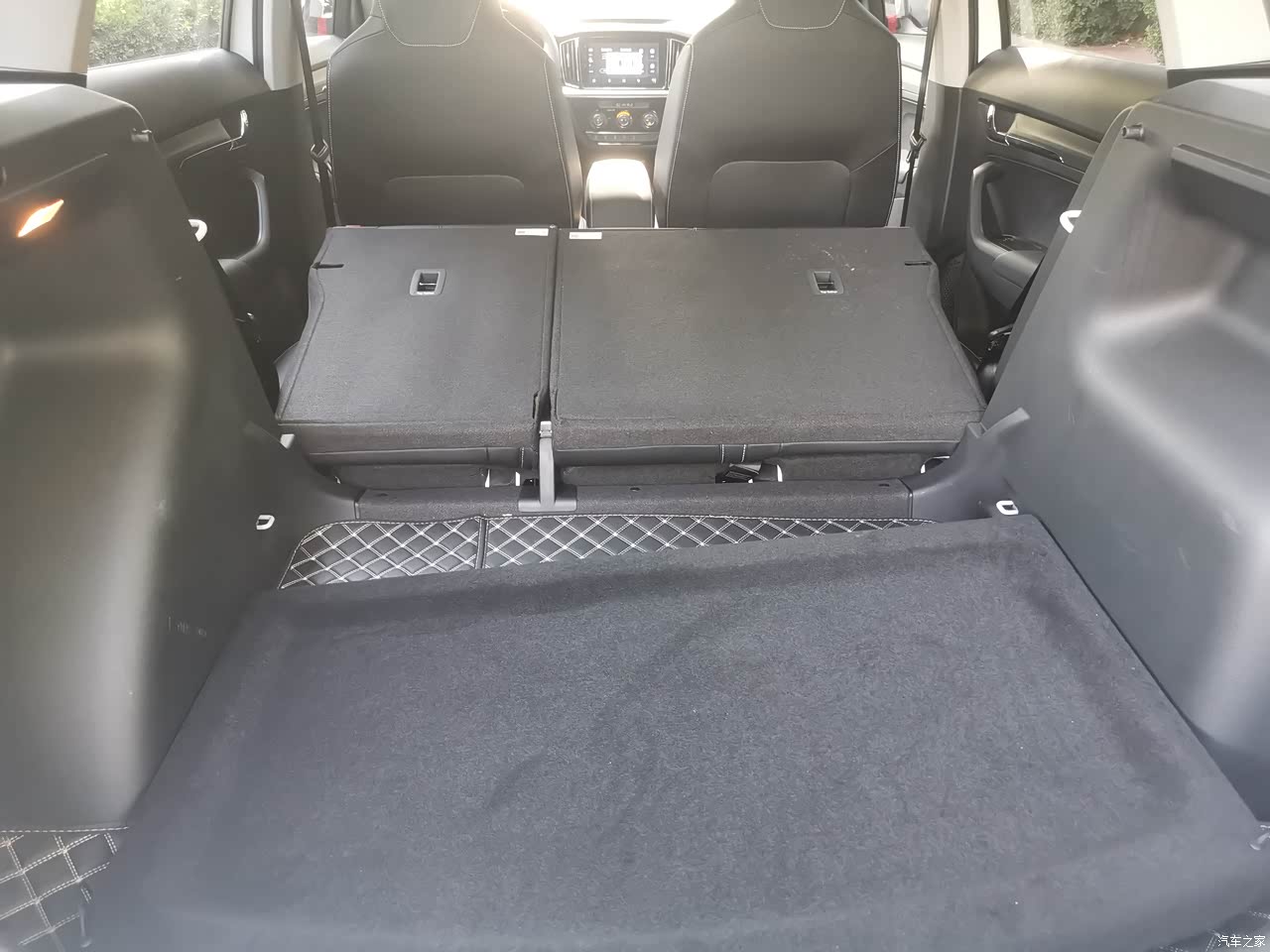 车4390*1781*1606整体看起来还是比较大的,坐进去头部空间,腿部空间都是比较宽敞的。家人坐到后排也是一样感到空间比较大,没有那种压抑的感觉。储物空间非常多,小件物品存放的地方很多,车门内侧储物槽,中央扶手处储物槽,副驾工作台下方储物槽等。储物空间方面最值得说的就是后排座椅可以放倒,后备箱空间连贯后排,放个气垫躺个人不是问题。后备箱开口比较大,车上放一些大件物品,很方便实用的。
