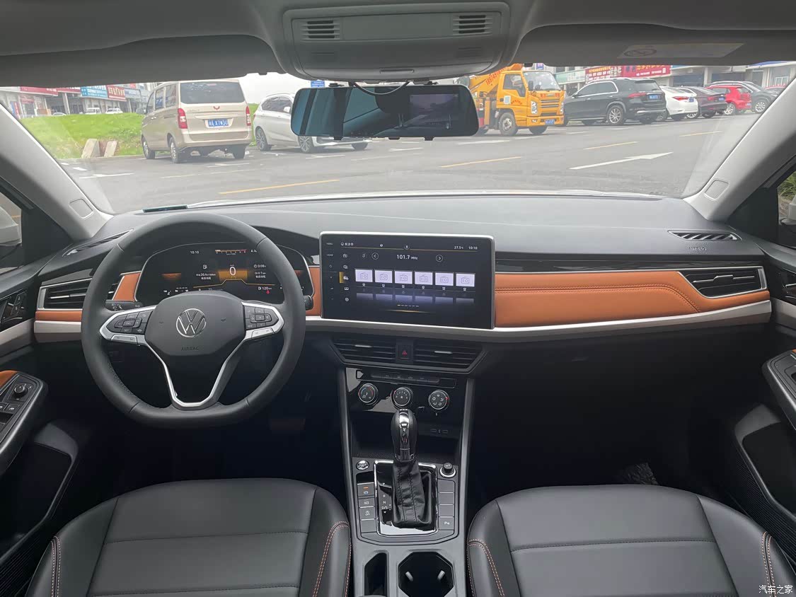 内饰真的一般,虽然中控台有橙色的撞色效果,但是架不住太过于简单。还有但是看车的时候没有细致看,那个换挡把手的地方太容易藏灰了。而且很不好打理。用料只能说过得去,没有多少好东西堆在内饰上面。
