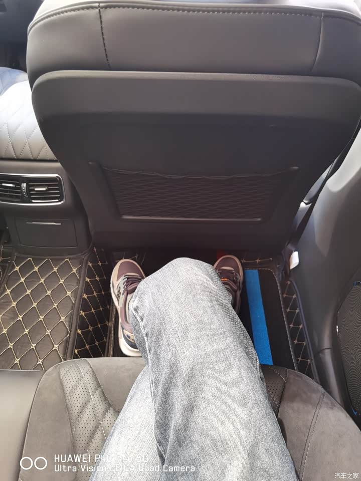 后排空间就更不用担心了。得益于2870的超长轴距,后排空间真的是很巨大,我这个身高的人,前排调整好座椅位置,座椅靠背基本上在B柱位置了,我依然可以轻松的翘起二郎腿!