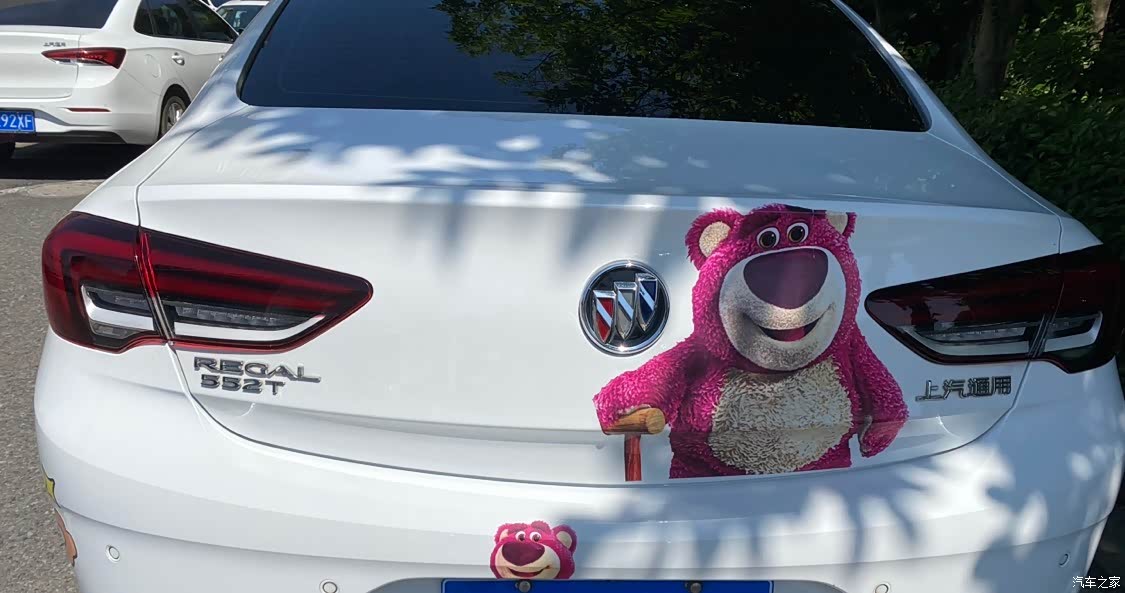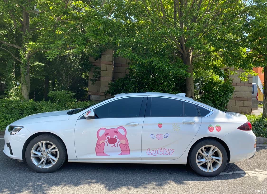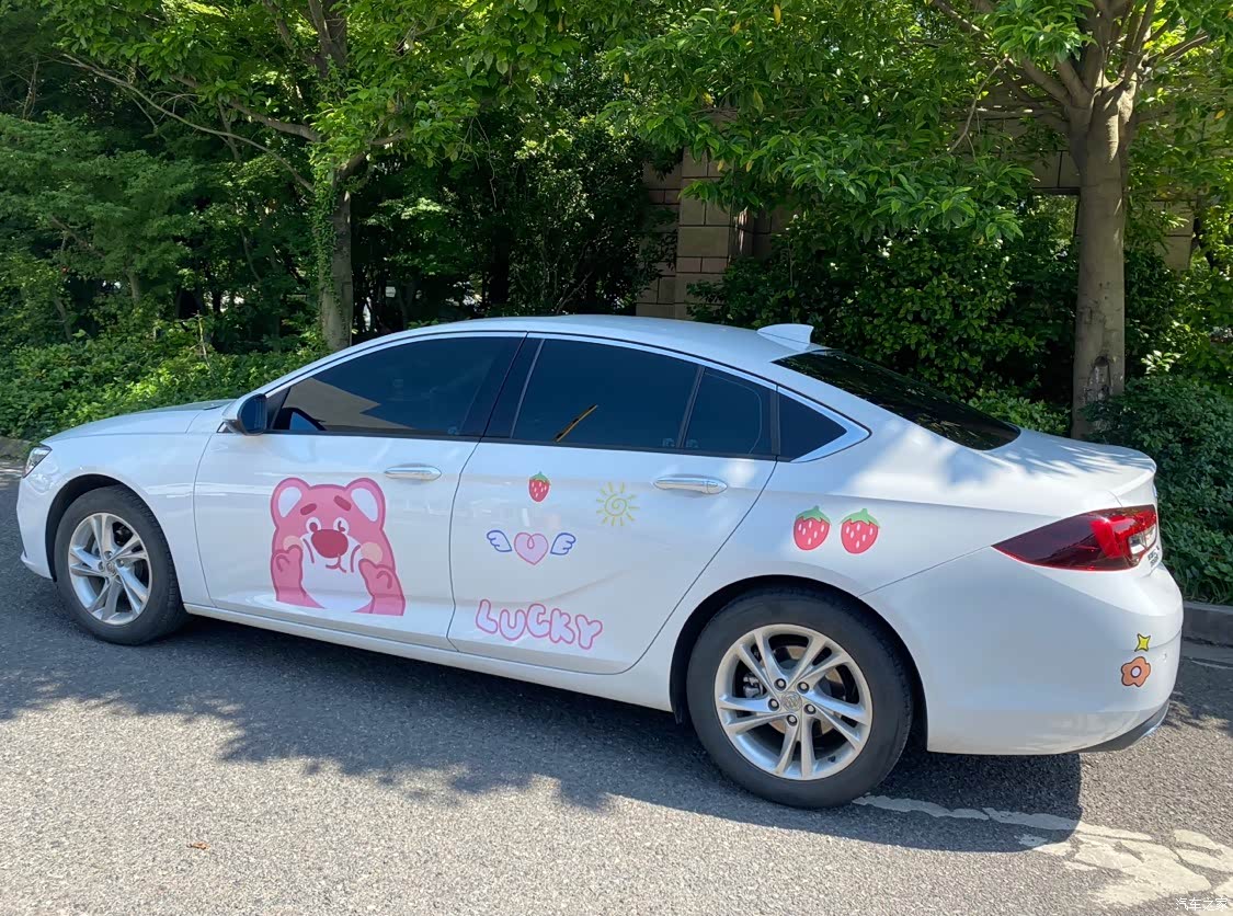 我最满意的就是这台车的舒适度很棒,打开车门的瞬间,内饰的软材质包裹是非常让我眼前一亮的,整车的内饰皮革包裹低调奢华有内涵,白色的皮质和黑色的搭配完全符合我的审美平时我自己的穿衣颜色也基本就是黑白灰,稳中而不失时尚的感觉,坐在车里满满的安全感包裹着自己,不管是中控还是门边上都有软材质包裹着,摸上去十分舒服。整体十分大方得体,还特别显年轻化,语音控制系统,安全带提示系统都让我觉得十分贴心,不管是我个人的驾驶体验还是朋友家人的乘坐体验感都是很棒的。因为后备箱的容积也不错,感觉这台车性价比很高,果然没辜负我的“一眼钟情”。因为我特别喜欢草莓熊特意在我的爱车上贴了草莓熊的贴纸,希望草莓熊和君威可以一直陪伴着我。