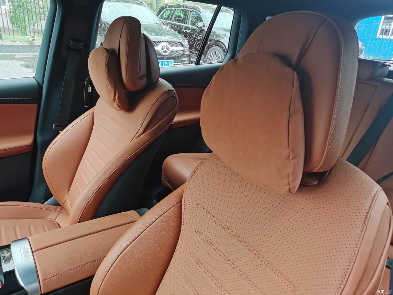 我试驾的奔驰GLC内饰是赭石棕色,这个颜色感觉很豪华,刚上车时也同样被惊艳到了。新款赭石棕色内饰设计更具科幻感,仪表屏跟中控大屏尺寸都不小,而且成像效果极佳,两块屏幕配合协调极了。空调出风口设计也别具一格,造型前卫且实用。总的来说,内饰我也给好评~,