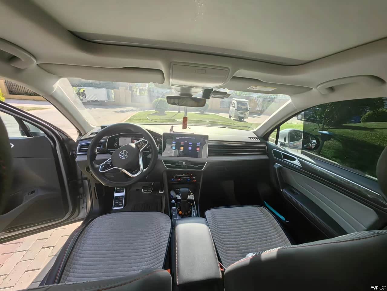 大众的内饰都是中规中矩的,方向盘手心出汗也不会打滑,空调制冷制热效果很舒适,上来的比较快,真皮座椅也很舒服。车内超大的天窗,晚上打开看看夜空,天气不冷不热的时候打开很舒服。中控屏是悬浮式的,看起来很清晰明白。