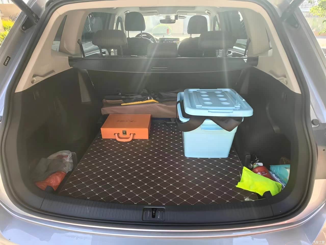 首先是主驾空间很宽敞,一米八的身高腿部放着很舒服,二排也是有大概两拳的空间,最重要的是后备箱空间,后备箱经常放两个收纳箱一个放一些文件一个是其他的零零碎碎,然后就是我们一般都是半个月去一次超市,会把东西集中购买,所以每次超市最少都是4大袋起,空间很是够用,这点是我最满意的。购物的满足感,哈哈