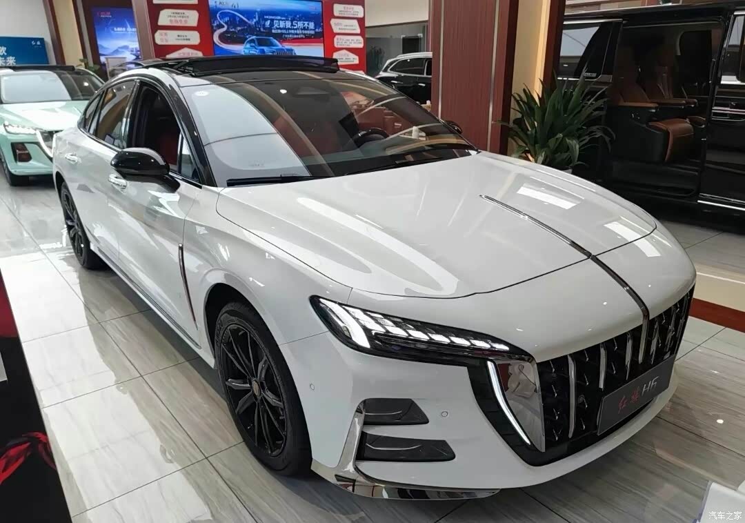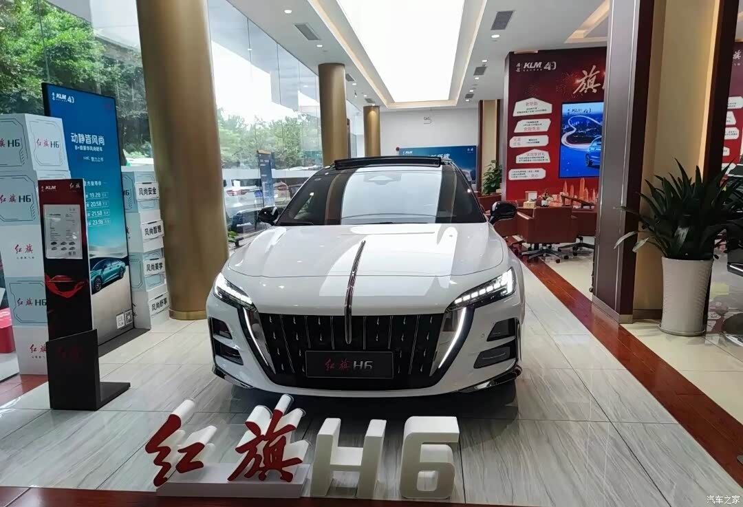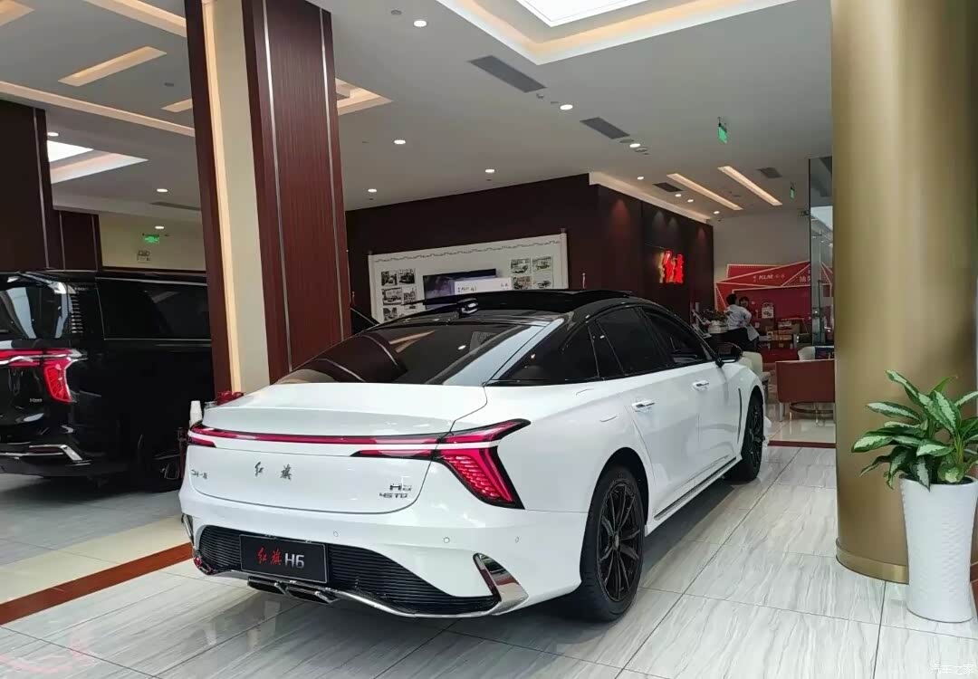 首先呢,你还是能认出红旗的家族化设计的,大尺寸的直部式进气格栅,中间延伸的红色饰条搭配全新的灯组造型,即便啊它俯冲低趴的车头不同于以往的规整昂扬,但属于红旗品牌的豪华盖也依然在线。车身侧面呢,采用了双腰线和溜背的造型,并且啊,用上了先背尾门,红旗居然出了掀背尾门,但既然都这样了,如果再配一个无偏框车门,岂不是更锦上添花了啊,尾灯组啊,也是家族式设计的样式,不过在这里我想提一嘴啊,不论是H9还是H5的尾大都是一体式贯穿的,其实是有些臃肿的,但在H6这里,它做了一个分体的,所以视觉上会轻盈很多。还有H6的双出排气,市面上我们见到绝大多数的中型轿车啊,轿跑或者是一些豪华车型,他们的排气往往都是坐在两侧,大概因为这样子能让视觉上变得更加的宽大,但H6呢,它采用的是一种像是那种性能跑车的中置双出设计,所以说这台车对于它的一个运动化的取向是非常果决的,也大大提高了它的辨识度。
