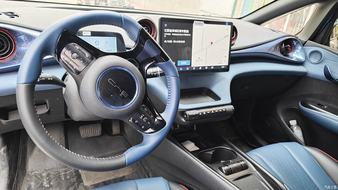 海豚的车身小巧,但车内的空间很宽敞。2.7米的轴距,前后排空间很宽敞。我身高178cm,坐在主驾驶头部和腿部空间都有空隙。后排地板平整,乘坐三人不会很挤。