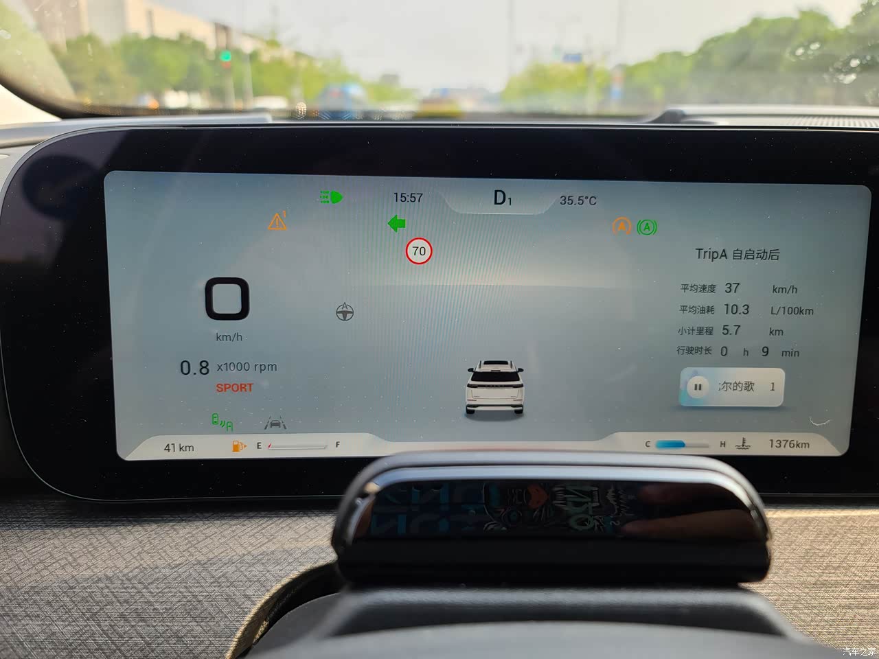 HUD抬头显示很实用,投影信息丰富,不光有车速,还有路面导航以及限速标志和车道寻迹功能。比较全面。