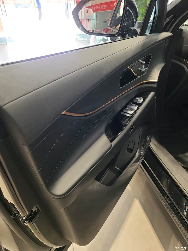 车门上软硬结合,除中间一条硬饰板,其余为软材质。