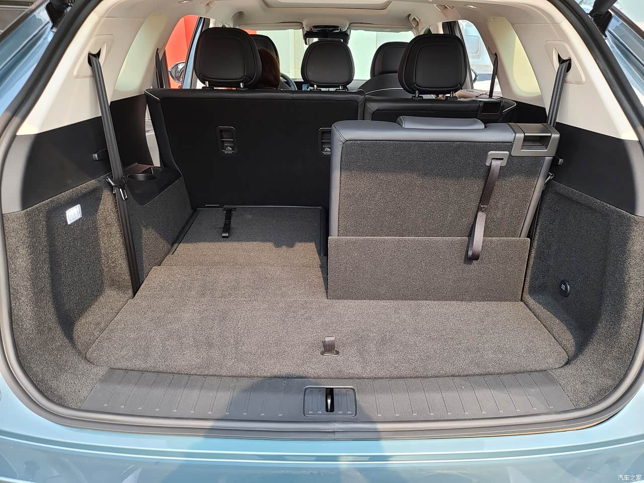 第三排座椅打开一个的情况下,储物空间还是有不少,而且第三排打开之后,后备箱放个储物箱也是足够的。