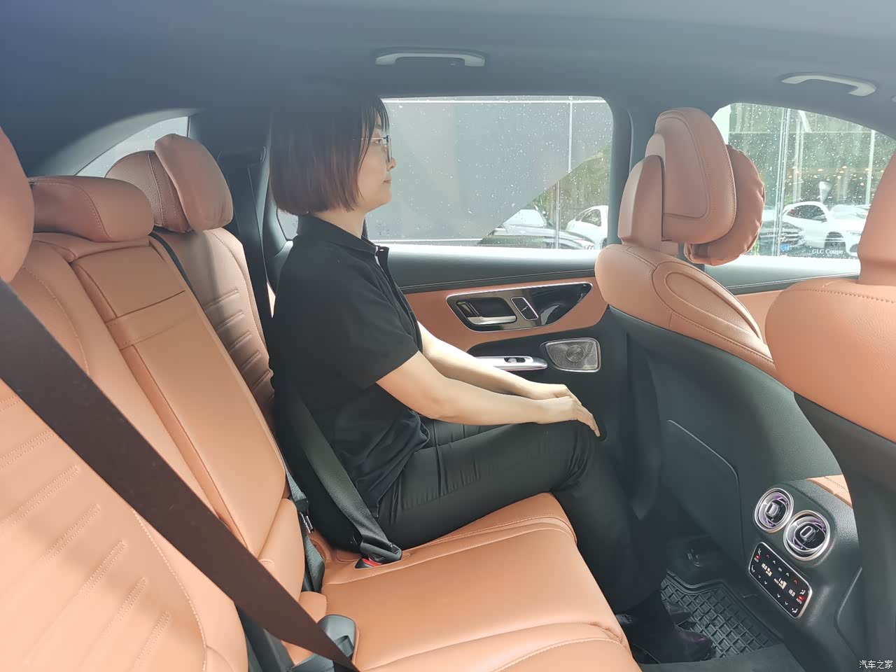 我身高1.63米,典型的东北美女身材,试驾坐进奔驰GLC内轻松无压力。前后排座椅都很宽敞舒适,头部空间也可以,对得起中型SUV的定位。后备箱空间我也细细看了一下,造型规则,深度足够,应该满能装的,哈哈哈,我很想自己进去感受一下大小,但是又碍着销售在,不好意思。