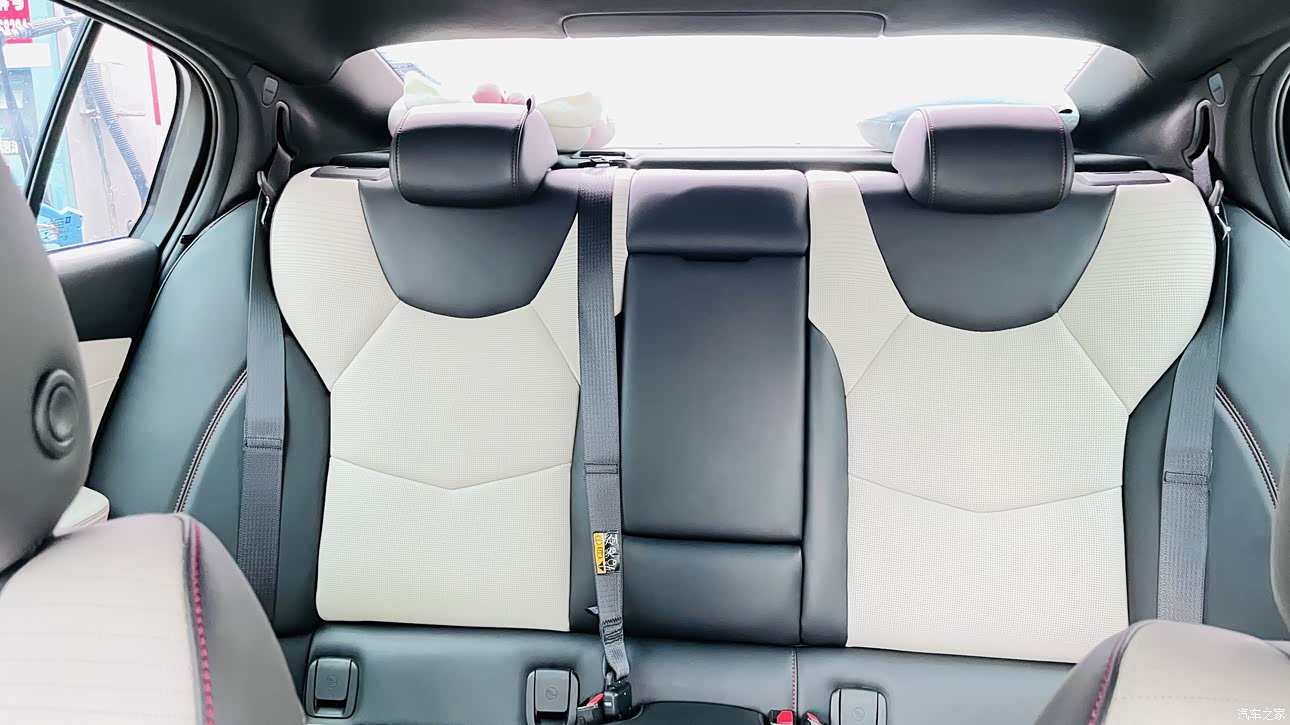 空间方面对我自己来说还行,我身高1米70,驾驶位的位置调节好,然后我再坐到后排去,我的膝盖离前排的座位大概还有20厘米出头,想翘一个二郎腿也没有问题。只是后排的中间有一个很常见的鼓包,对中间人的乘坐会有影响,但对于后期车型来说也无可厚非,传动轴无处安放,只有放在这里。