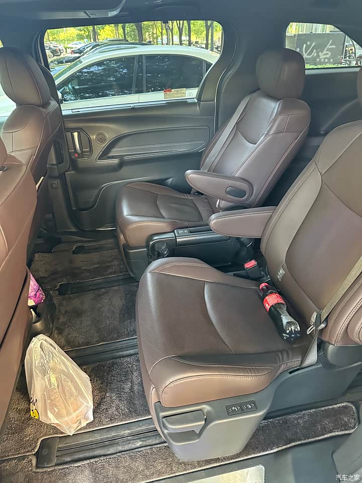 乘坐空间绝对是这个车的亮点,它可以做到让每个乘客都很舒服。横向空间纵向空间都很宽敞,头部空间也很大,不会顶脑袋,第二排座椅中间的小桌盘也很方便实用。