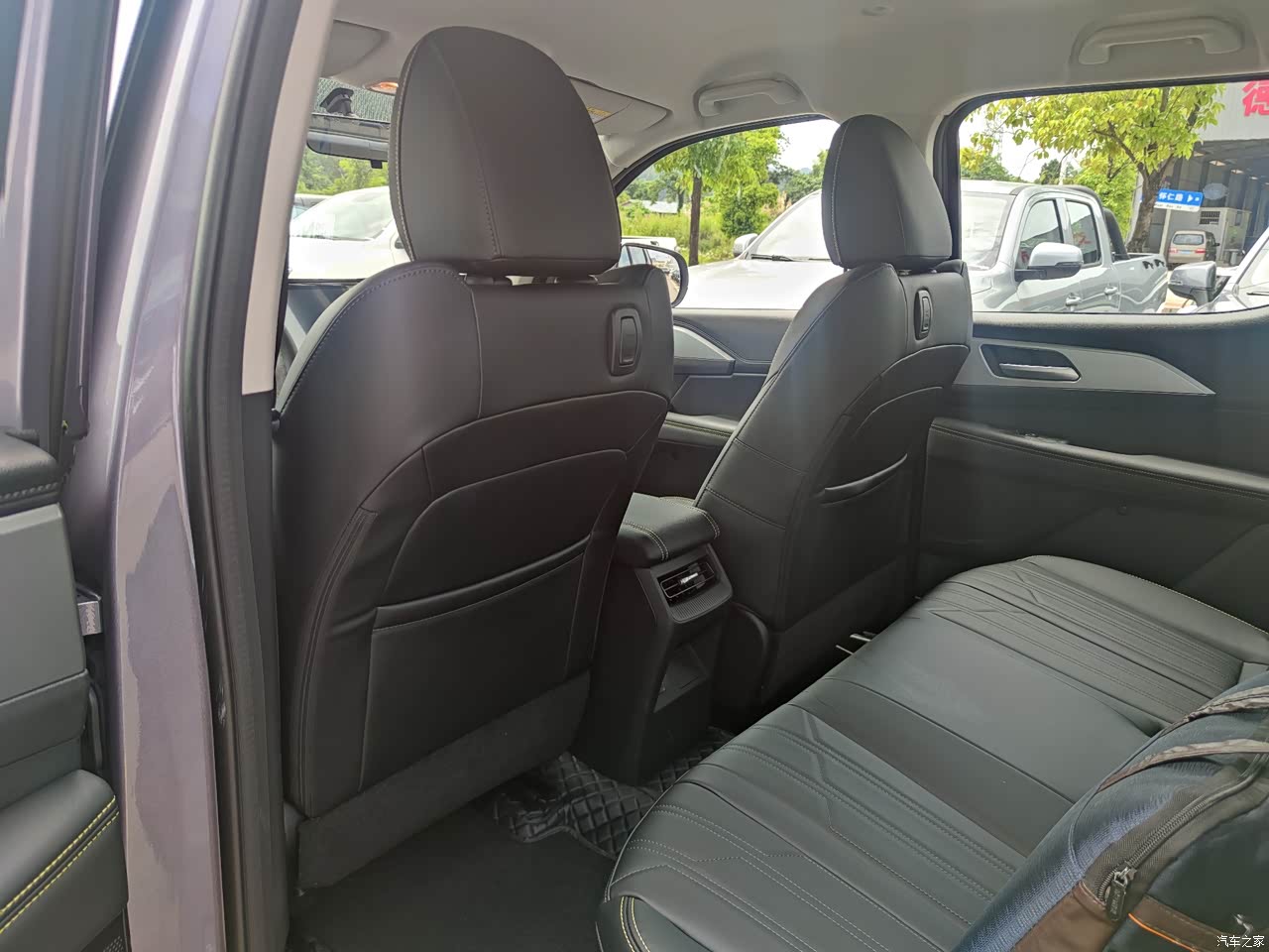 内饰用的是黑色设计,空间也是非常大,平常带着家人出去玩坐五个人一点不觉得拥挤,皮质座椅清洁方便,后排坐着跟轿车差别不大,很舒适,不担心长途累