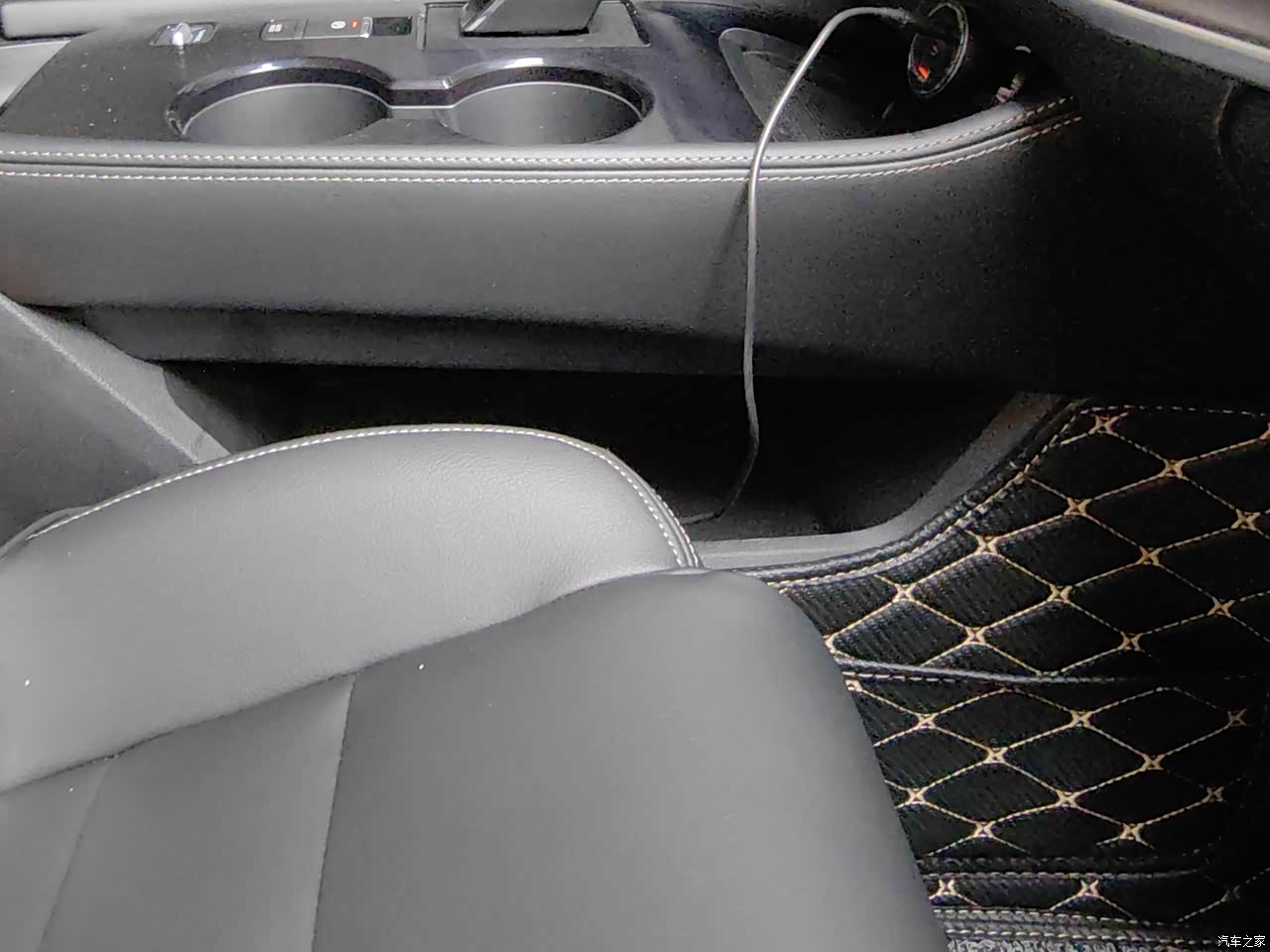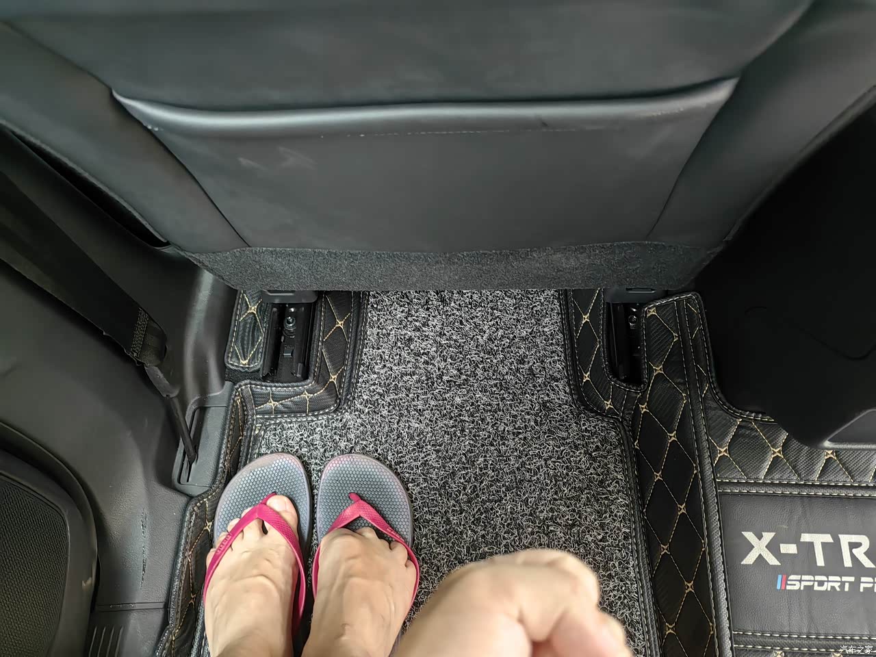 中控台下有一个不大不小的储物格,放双鞋,放把雨伞或者一些其他的杂物都没啥问题,很方便,好评
