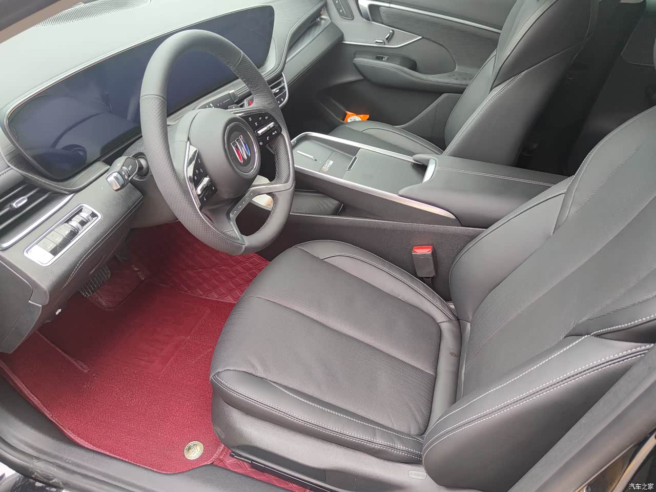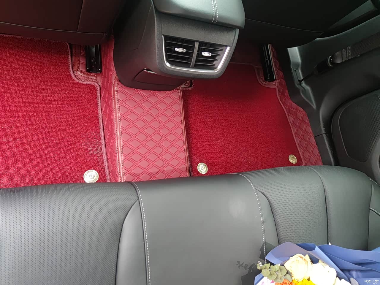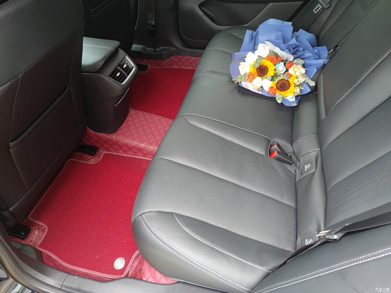 我觉得新款君越的内饰改的还是比较成功的,改成了30寸的大联屏,而且车机也流畅了很多。中央扶手改成了游艇式的悬浮中央扶手,看起来比较时尚,还带手机无线充电功能,座椅调节也改到门上。后排座椅的坐垫是比老款要加长了,做起来确实也很舒服。就4S店送的脚垫非常一般,我直接订做一套全包围的红色脚垫,黑红配色还是挺好看的。