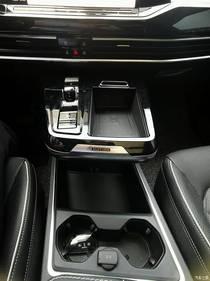 液晶仪表和12寸的中控大屏用起来非常不错,很有科技感,完全没有了前些年大众的那些刻板印象,大众也知道与时俱进的啊。然后是悬浮的档位中控台,看起来还是非常新颖的,而且空间利用率非常高,用起来很舒适。下方的储物空间还给配备了两个TYPE-C的借口,杯架处还有两个12V的电源,中控有无线充电,面面俱到,能兼顾所有人的手机游戏机无人机充电。车内整体的材质和质感非常高级,我也说不清楚是什么材质,反正上车的感觉就很豪华,有一种高档感。