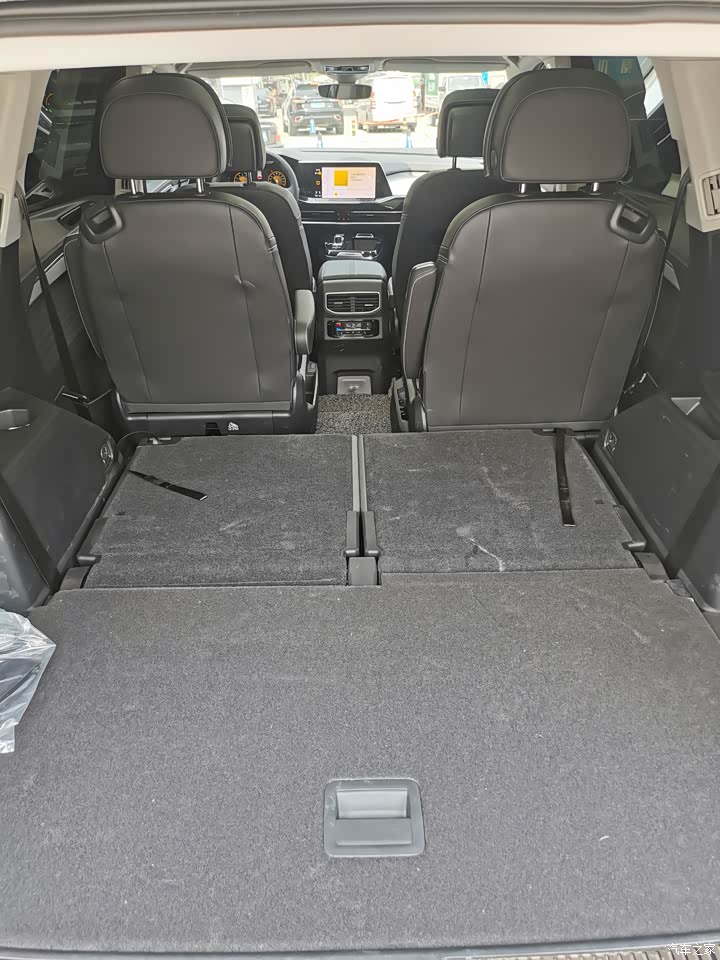 车身尺寸摆在这里,乘坐空间舒适了,为了第三排,牺牲后备箱是必然的,现在的后备箱能够横着摆下一个行李箱,这点在我看来也算是难能可贵了,起码可以把后备箱的高度利用起来了。如果仅仅是我们一家四口出门,把第三排放倒,能完全放平,那我愿称揽境为后备箱的王,别说拉东西了,用来搬家都够了。