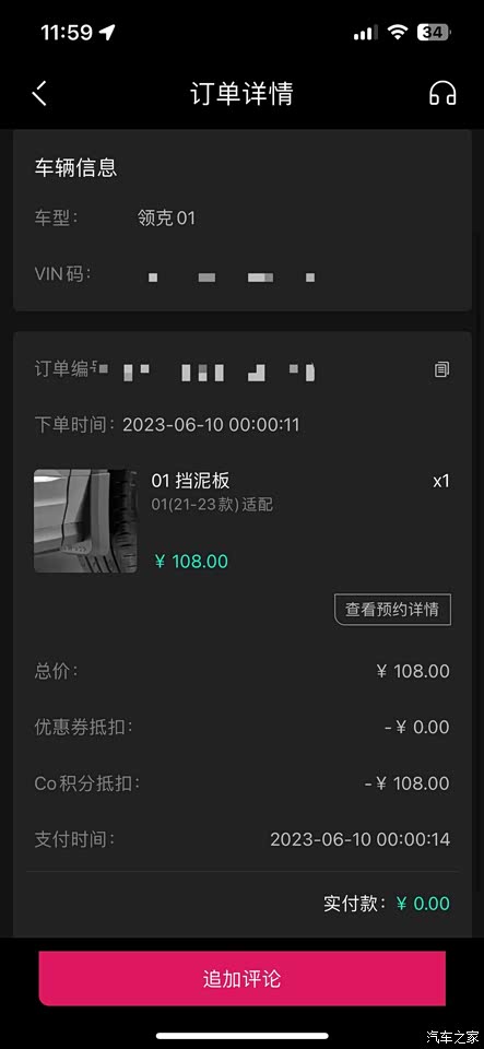 我购入的时候落地价接近 19w,喜欢的朋友一定要现在入哦,六月份的优惠幅度真的很大,已经是羡慕至极的感觉了。应该比我三月份要优惠 2w 左右。保险是 5300,三者险买的是 300w,其他的险种该买的都买了,希望第二年能多降一些。 还没经历过保养,首保免费,至于次保有关注到领克每年都会发放 300 元的保养券,这样加上一年或一万公里的保养周期,其实还是很划算的,相比于日系的 5000 公里保养周期,性价比上也不差。 另外真的要夸一下领克的APP 精选商场,有很多福利和精选商品可以购入,最近就加装了领克 01 的挡泥板,在自己的 CO 币积累下,相当于免费入啦。