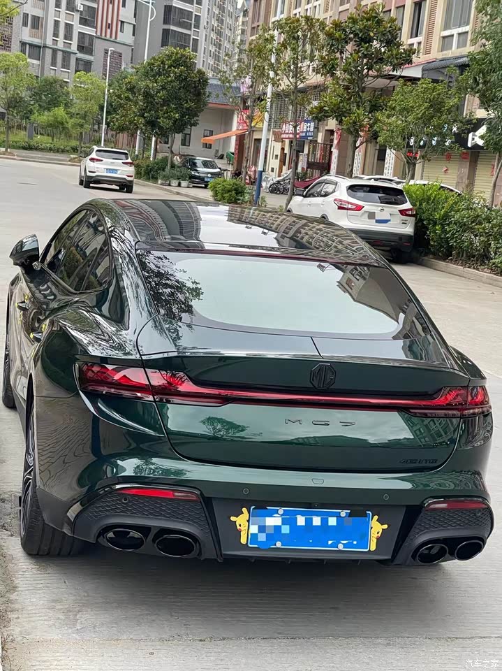 ①驾驶感受 6月22日提车 1.5T的顶配 配色为绿外绿内~~~今天刚刚好满一个月~~浅谈一下用车感受吧~目前总计里程为800公里 平均油耗7 常居武汉市区 这个油耗我觉得还可以接受吧 说起来各位不要太相信表显里程喔 那个是根据油耗算出来的 跑高速的时候你会发现这个里程越跑越多!!废话不多说 进入正题! 首先第一直观感受是油门,这个油门非常跟脚 刚开始提车那几天真的很不习惯 匹马力劲真的很足 感觉怠速都比其他的车要快些 有点把持不住 后来时间长了就掌握啦~ 已知动力很足 油门跟脚 自然红绿灯起步提速不会墨迹 日常市区通勤建议普通模式即可 如需超车可开启Sport运动模式或者像我一样琢磨换挡拨片(还没学出来..有空一起弹射起步??)动力方面真的很满意 这个可以直接影响我在高速超车的时间 有时候被货车压着走视野奇差 想超车速度上不去就会导致超车时间变长 尤其是单行车道只能借道超车的时候非常危险,在小7的马力加持下 我已经好几次探头-转向-提速-回车道 在5秒内一气呵成 非常舒心~~ 爽 真的很爽 如果你不是社恐 打开尾排 一脚油门下去的时候 这个感觉不言而喻!! 说到油门——必须带上刹车 如众多车主诟病 这个油门前3/1部分比较软 踩下去有反应 但制动并不是很明显 如果急减速 建议多练练点刹连点会更安全一些; 座椅配色我个人是非常喜欢的 但是感觉包裹性欠缺了一点 毕竟是主打运动型嘛 包裹性强更有感觉不是嘛~ 不过这个电动座椅和记忆座椅豪华感还是有的,熄火打开主驾驶门座椅会自己往后收 方便我们下车 进入车内坐下按下点火时 会自动设置为上一次乘坐时调节的位置 还是很舒服哒~并且记忆座椅支持两位驾驶员的保存 即使被朋友借车调了 也可以一键恢复~~然后这个座椅是支持前后以及上下的高度还有靠背倾斜度的调节的 有些小巧玲珑的妹妹开车也不用带坐垫了 很贴心~ 车身长度为4884 车头还是比较长的 视野自然也不像SUV那么宽广 而且刚接触时车感不好自然有些不自信 好在360全景影像及透明底盘让我心安了一些 可能不准 但作为参考的作用应该足够的。 小提示:如果行车过程中遇到发动机声音很大不像之前一样时 并且提速提不起来 请有限查看转速是不是呈现3800转左右并且档位显示M1 这种情况一般是档把挂挡到了手动模式 不习惯换挡拨片的朋友请迅速找机会靠边重新挂D档前行 避免长时间高速运转拖档损坏变速箱 另外一个方法是长按换挡拨片3秒会自动取消手动模式进入D档 但未验证MG7能不能用 谨慎行车 安全回家! ②仪表台感受 仪表台的大连屏以及皮革装饰的条纹看得出来还是很用心的 ③空间感受 虽然定位的B级车 但是那些小黑子黑2700多轴距这个确实是有道理的 前排不调座椅还好 如果座椅调太后 后排乘坐感受确实不是很好