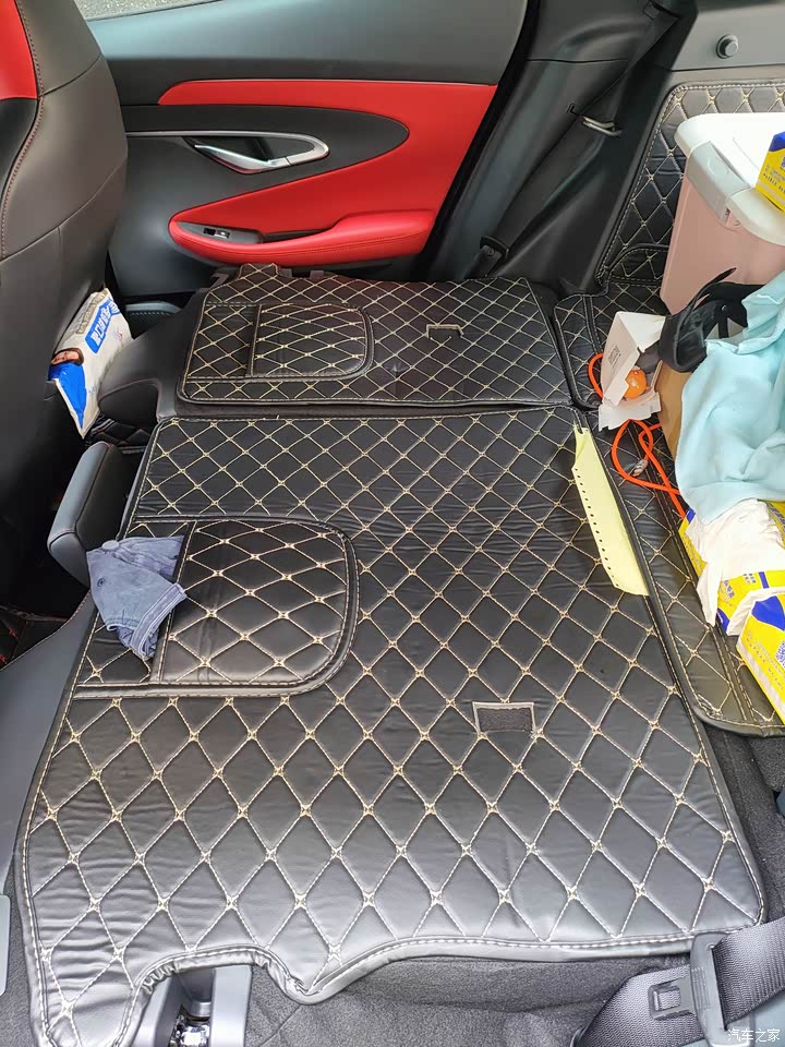 空间宽敞舒适,红黑搭配好看,后备箱够大,车内储物够多够用