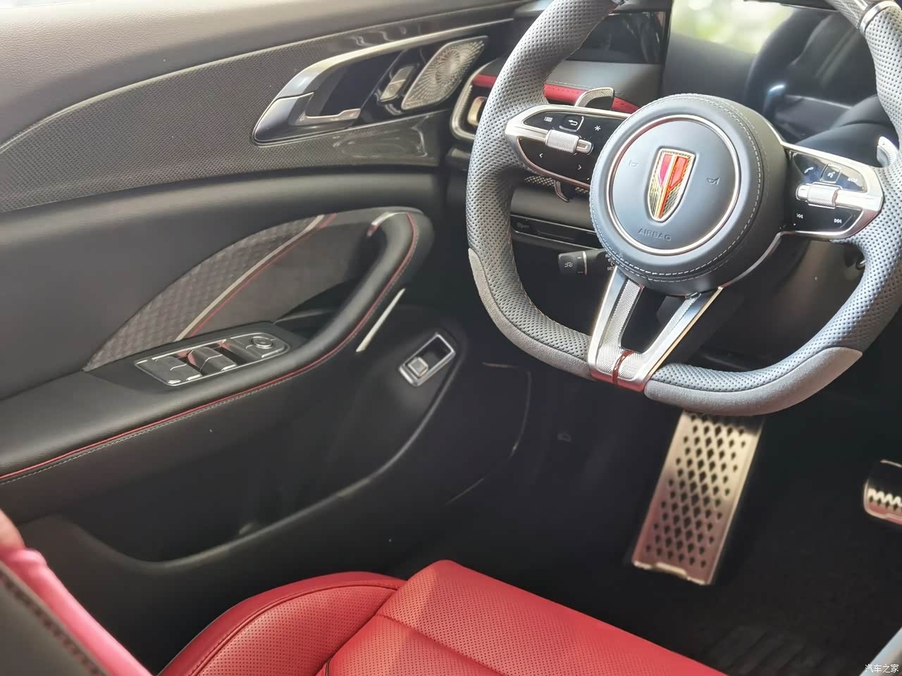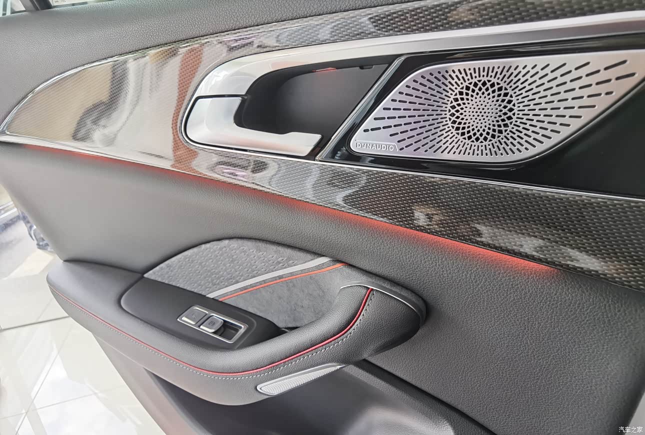 坐进车内,感觉内饰整体设计的很简洁大方,内饰采用了一体式座椅,让乘坐很舒服,透气性也很好,而且长途驾驶不会感觉疲惫,方向盘的尺寸正好,即使女司机也可以轻松掌控,握起来的手感也不错,并且方向盘上还有很多功能按键,查看车辆信息,控制车内音量大小,操作起来很方便;车门上的氛围灯夜晚点亮让车内更加豪华大气,并且搭配银色开门把手,让车门整体更加年轻时尚,并且车内还采用了碳纤维,非常符合这款车的气质,并且内饰的颜色搭配我更喜欢红色,彰显了这款运动轿跑的独特气质!