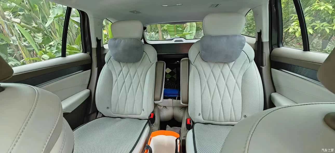 第二排可以说是全车最舒服的,如果第一排座椅靠背可以放平就好了,这样和第二排能形成一张床那就完全美了,不知道为什么没有这样的设计