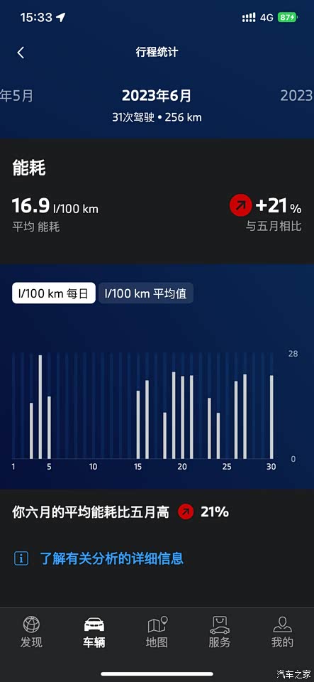 上下班高峰期通勤油耗差不多16-17,高速的话能到10-11左右,不过平时也不太关心油耗。