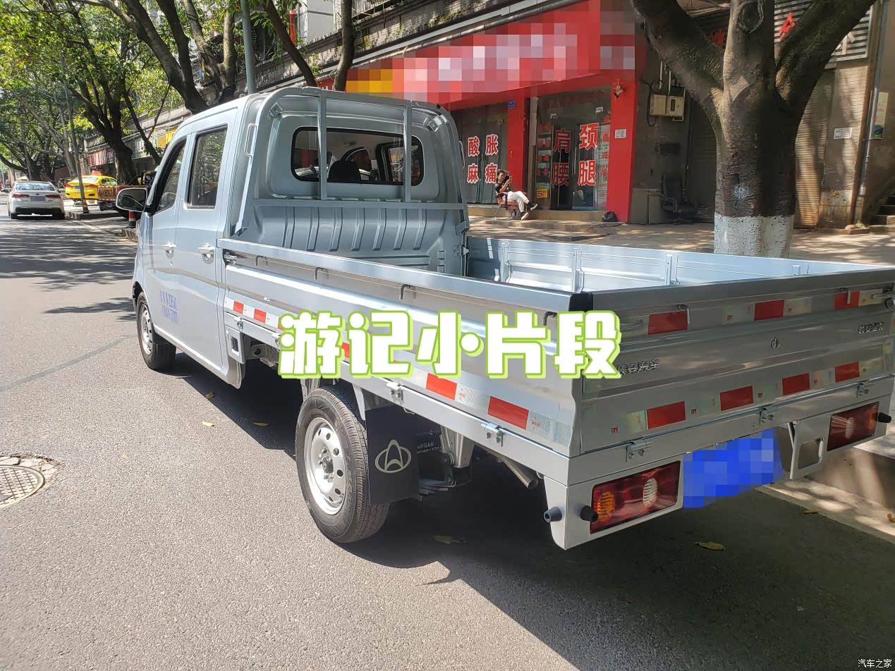 这货车空间挺不错的。我选了双排车,就两个目的,一个是拉货,一个是带着家人一起出去玩。前排空间宽敞,坐起来挺舒适的。媳妇和小孩经常坐后排,空间也够宽松,上下车也方便。货箱也不错,大概2米55长,1米5宽,装些一般大小的东西应该都没问题。特别重或体积大的物品就难说了。