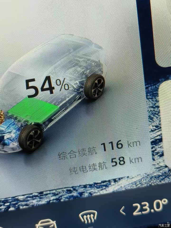 满电耗至40%电量、全程22度空调用60%的电跑了60公里,感觉和标的续航里程差不多,觉得电不经用。满油满电续航待测后补充,短途用电、长途用油,没有纯电车的里程焦虑,油耗也不高。