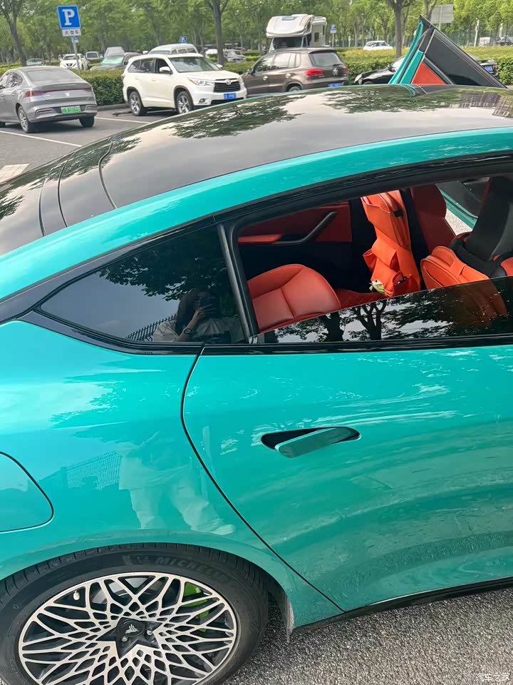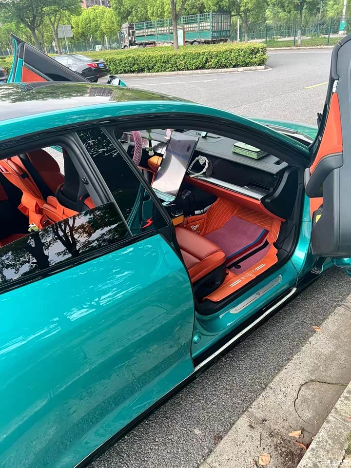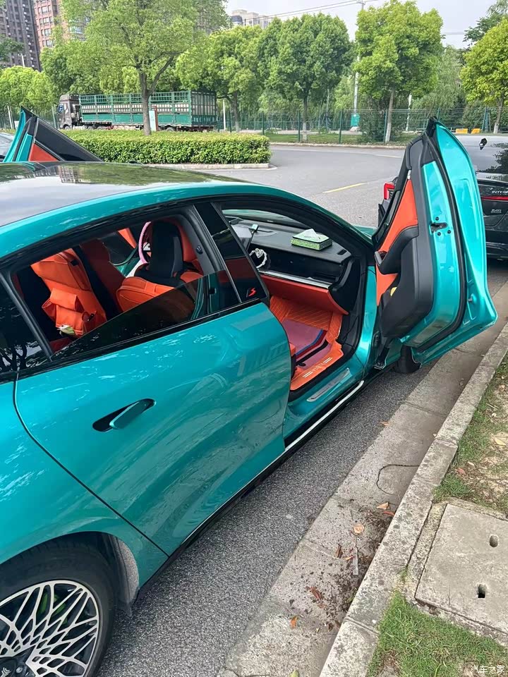 外观我很满意!我也很喜欢我选的这个配色,内饰橙色,配上车的绿色,很具有色彩冲击性,很酷!我就喜欢这个感觉,还有剪刀门。但是剪刀门停一些车位不是很方便,一些机械车位不是很能停,因为有自动壁障,每次都开很小,挤着出来,耀世的痛苦。